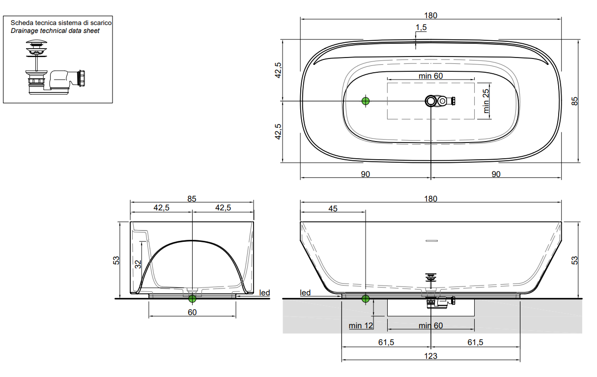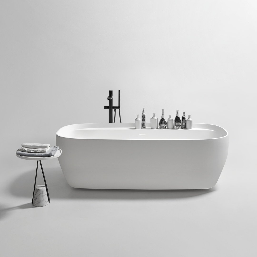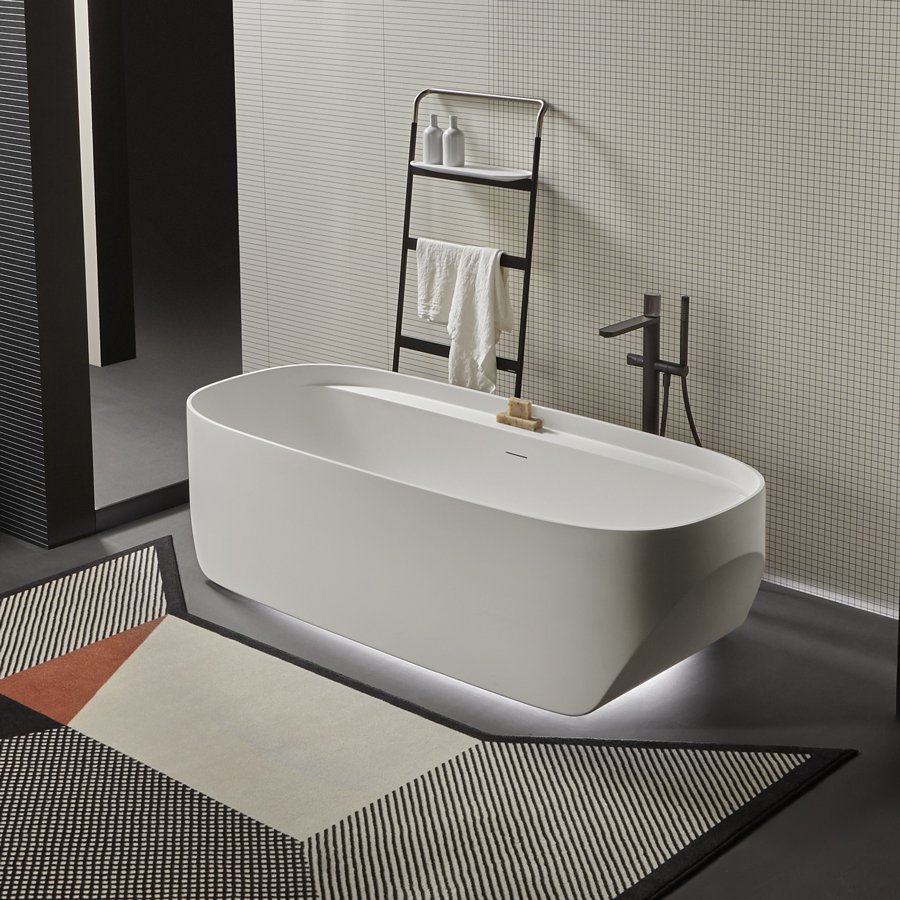 正是這個低邊緣支撐著大體積,成為一個實用的支撐表面,可以在上面存放身體護理所需的物品。最終定義浴缸整體形象的功能性細節,賦予形狀動感和活力。