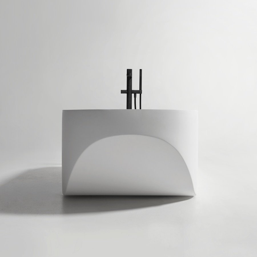 Sled 是一個獨立式浴缸,由一個完美的幾何形狀轉變而成,通過兩個對角線切割來剖析盆的深度,以及一個沿著寬度周長的切口,仿佛在測量邊緣的縱向發展。