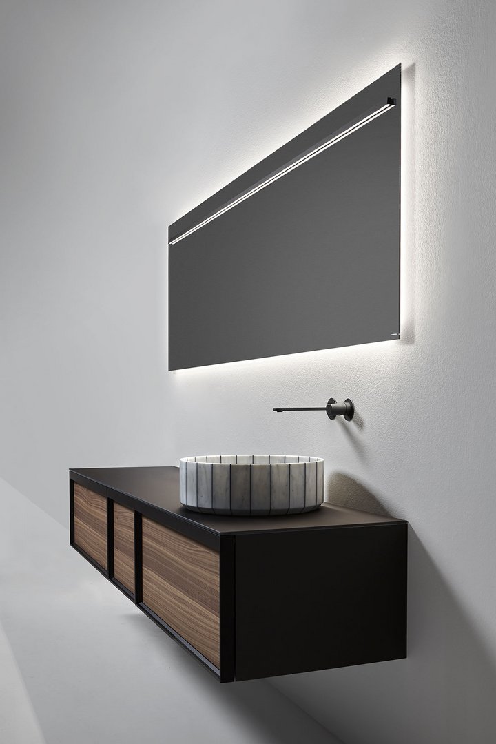 Lucentina 是一款設計極簡的燈,采用亞光黑色,在使用時與鏡子完全融為一體。配備直接和間接 LED 照明,長度不同,可放置在鏡子上的不同高度。