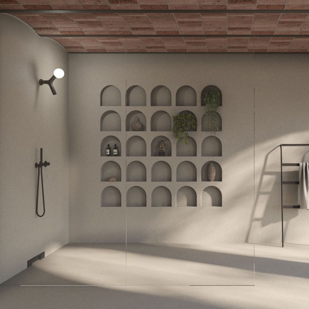 純粹的幾何形狀,精致的比例平衡,完美嵌入墻壁。它延續了 antoniolupi 的研究路徑,超越垂直表面的二維性,探索外殼與提供空間的元素之間的整合潛力。