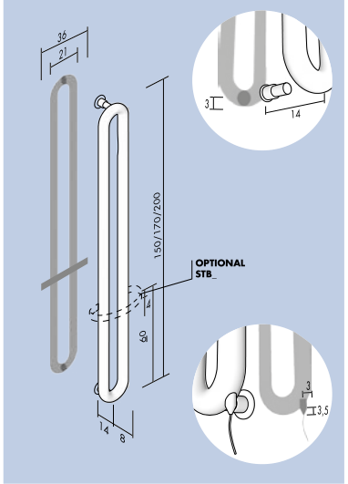 Tubone modern electric radiator starts off as a linear, simple and clean-cut shape where proportions become a distinguishing and identification feature. The basic element comprises an oval ring made with a tubular element with a considerable cross section of 60 mm, with two very sharp 180-degree bends.