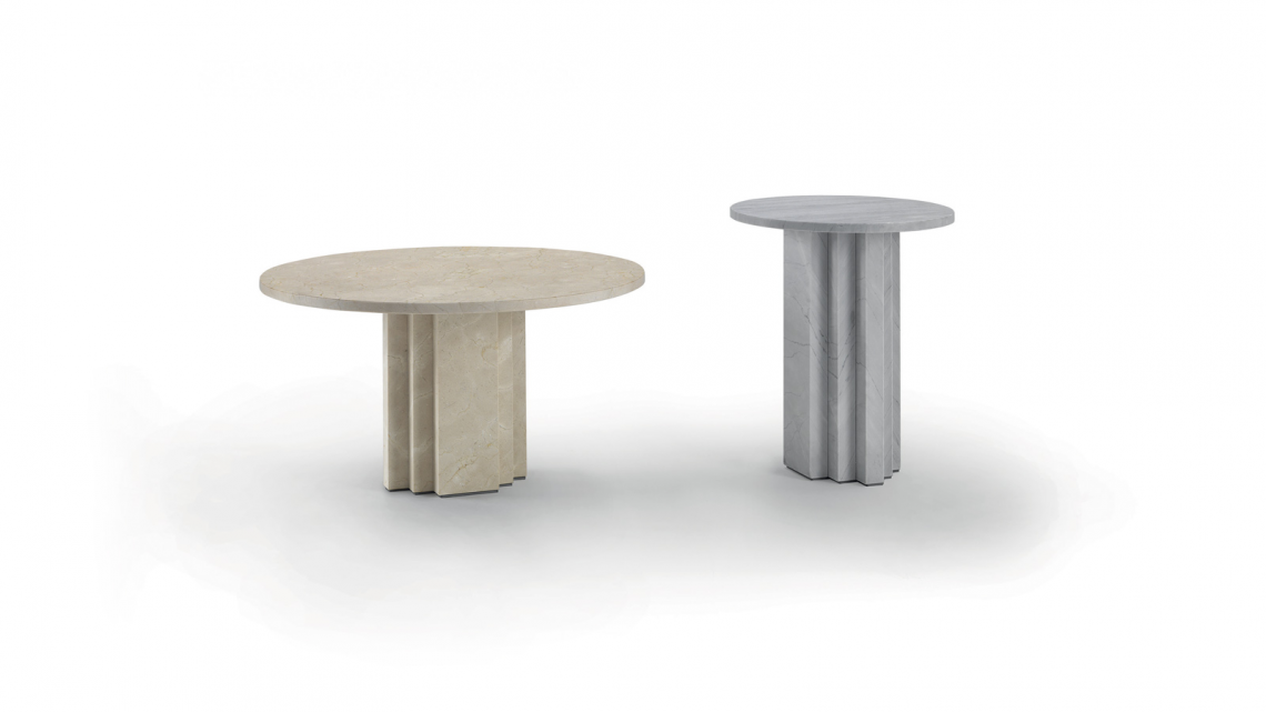 With a design entirely inspired by its material, its thin round top is contrasted by a sculptural scaled base - an intentional and marked design detail.