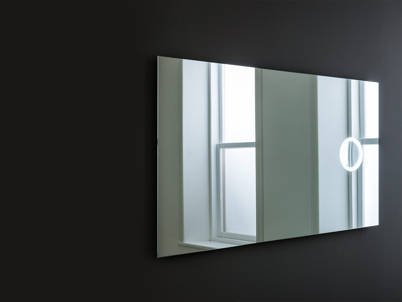 Specchio filo lucido 5 mm con e senza led diffusion, trasformatore 220/12V ed interruttore sensor con specchio ingranditore retroinserito completo di illuminazione ed interruttore sensor indipendente. Solo Luce fredda 5500°K.