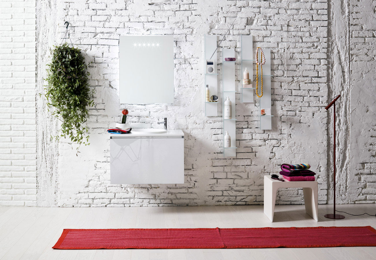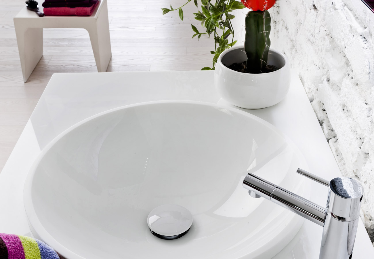 Per questa collezione è stato pensato un lavabo integrato dalla fusione particolare che permette di sfruttare al meglio tutta la profondità del mobile e di poter usufruire di miscelatori sia da appoggio che a muro.