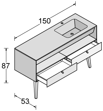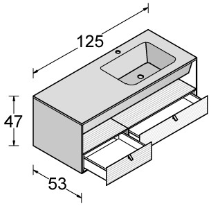 La razionalità del disegno del monoblocco è sdrammatizzata sia dalla componibilità interna data dai cassetti e dai vani a giorno, posizionabili liberamente all’interno dello spazio, sia dalla possibilità di abbinare colori diversi, grazie a Dualite.