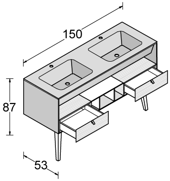 La razionalità del disegno del monoblocco è sdrammatizzata sia dalla componibilità interna data dai cassetti e dai vani a giorno, posizionabili liberamente all’interno dello spazio, sia dalla possibilità di abbinare colori diversi, grazie a Dualite.