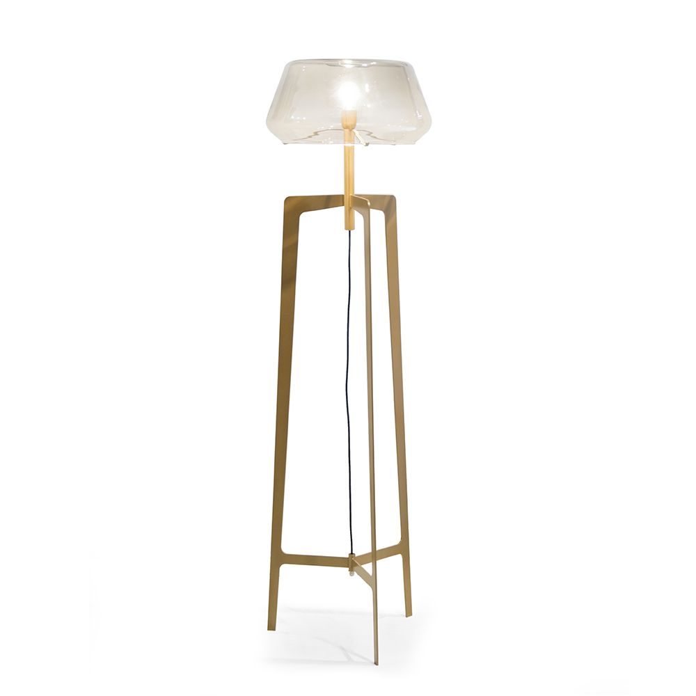 metal structure Light Gold satin finish, shade in glass fumé.