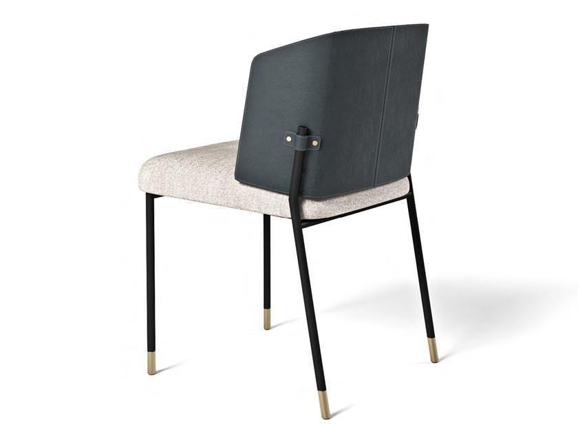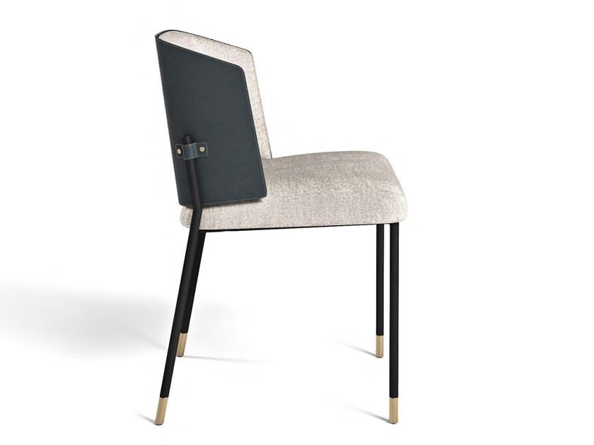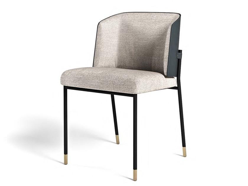 V242 Dining Chair, cm 48x55x74h Seat and backrest in fabric Brera col. 10, structure and flaps in Cuoio col. Graphite, metal structure matt black, feet in light gold finish