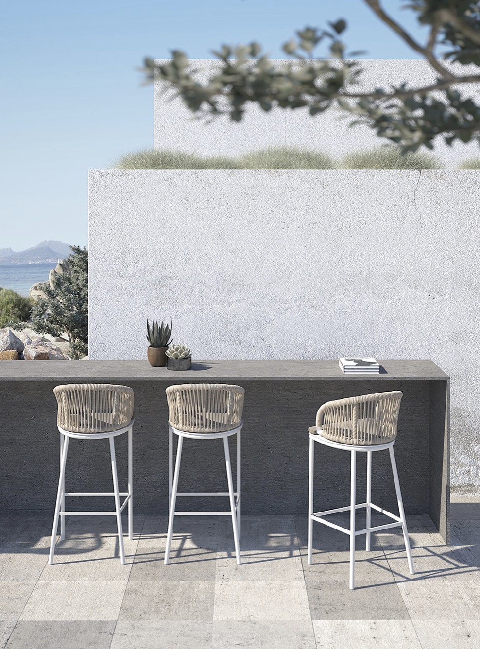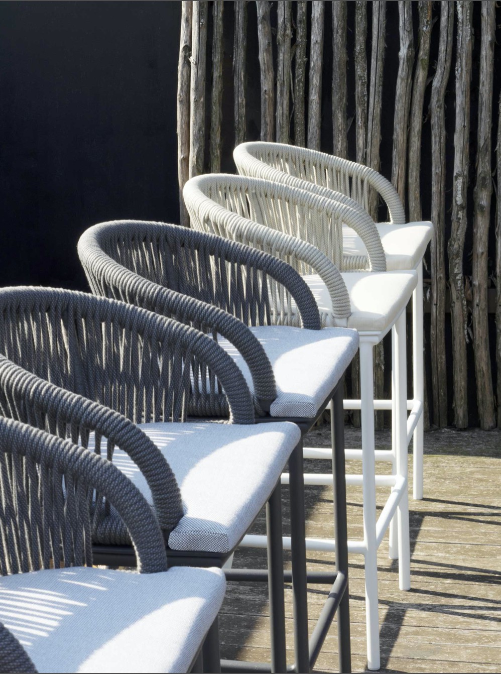 Design pulito e minimale descritto in una struttura completamente in teak intrecciata da una corda rotonda che crea una maglia morbida e di forte tenuta. Un nido accogliente diventa spazio di conversazione e lettura.