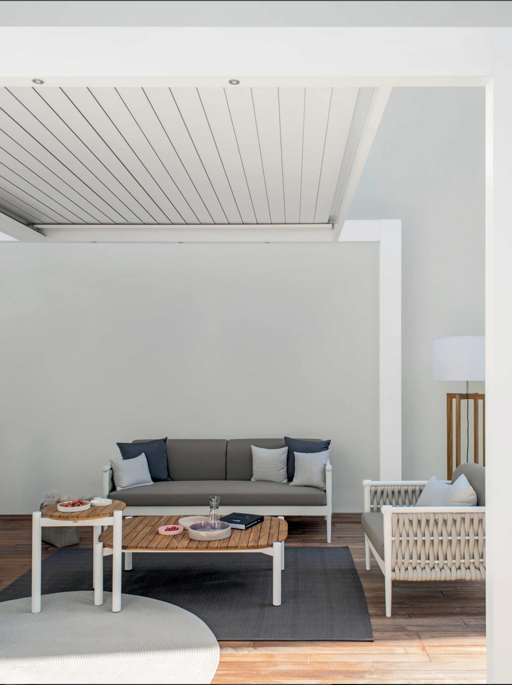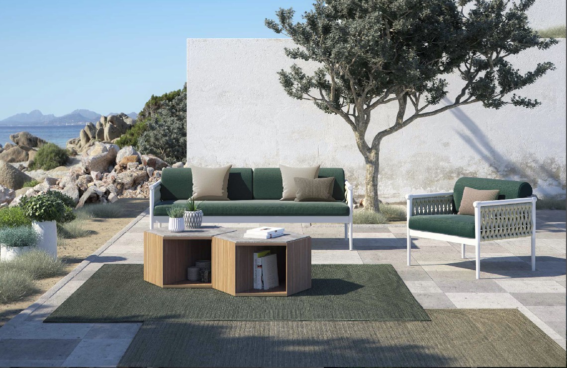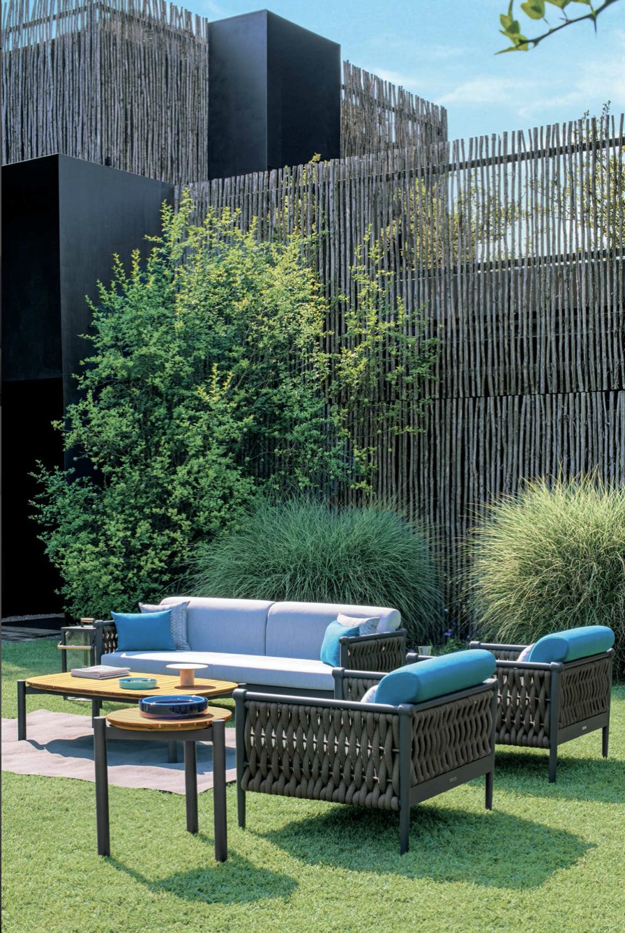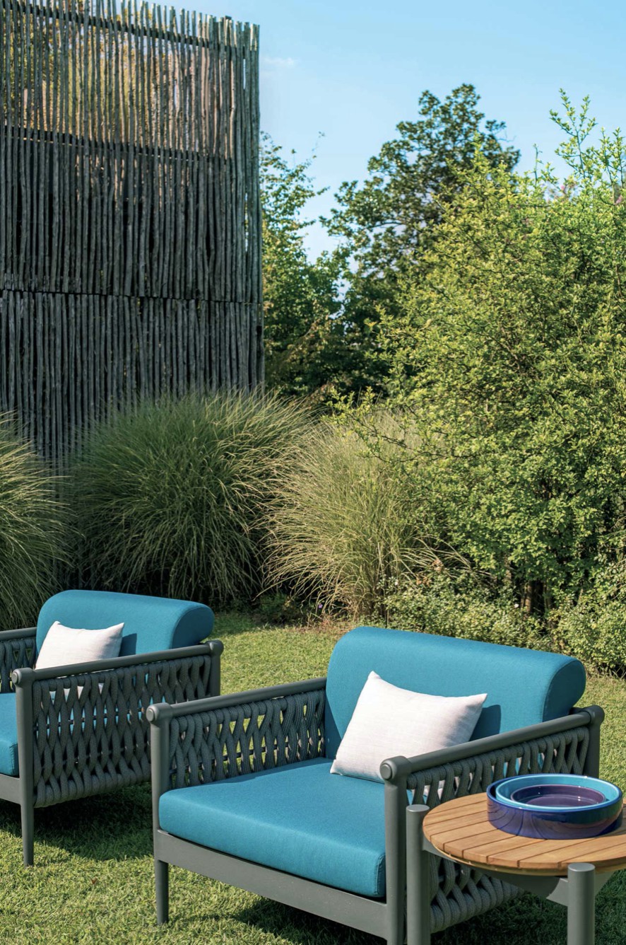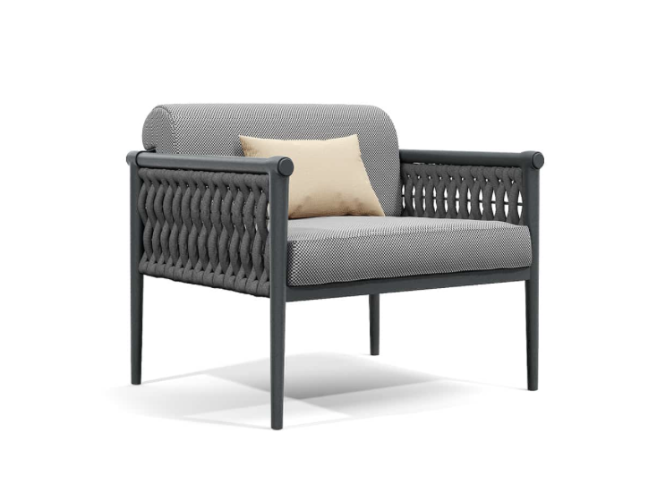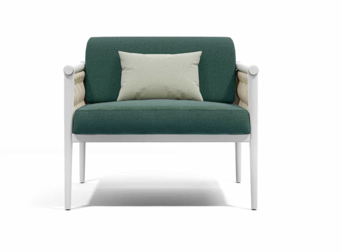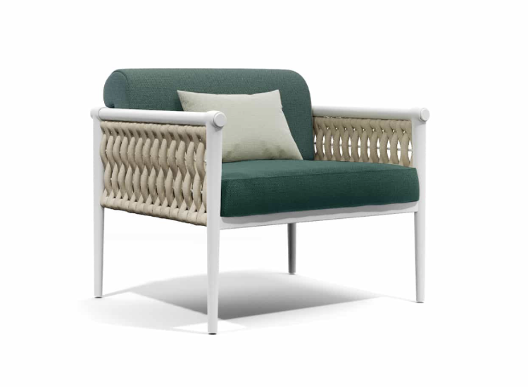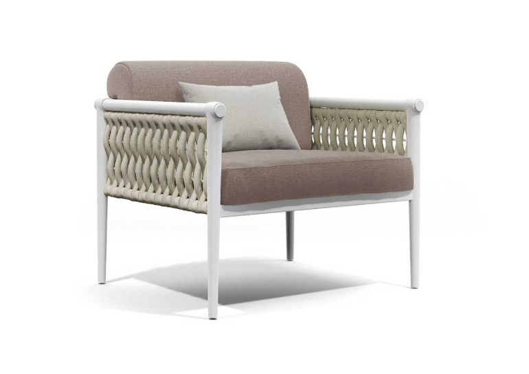 Come in una cravatta il nodo diventa dettaglio di eleganza ed elemento di distinzione, Dandy interpreta il concept attraverso una struttura in alluminio intrecciata da morbide corde.