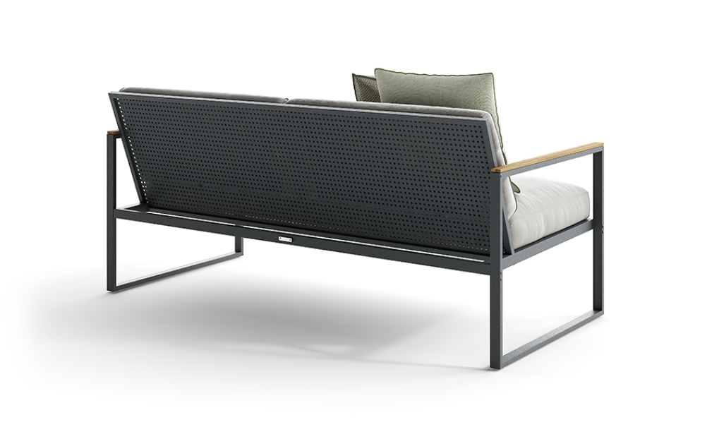 Strutture in alluminio verniciato epossidico per esterni in colore bianco e grafite, dettagli in TEAK Asiatico.