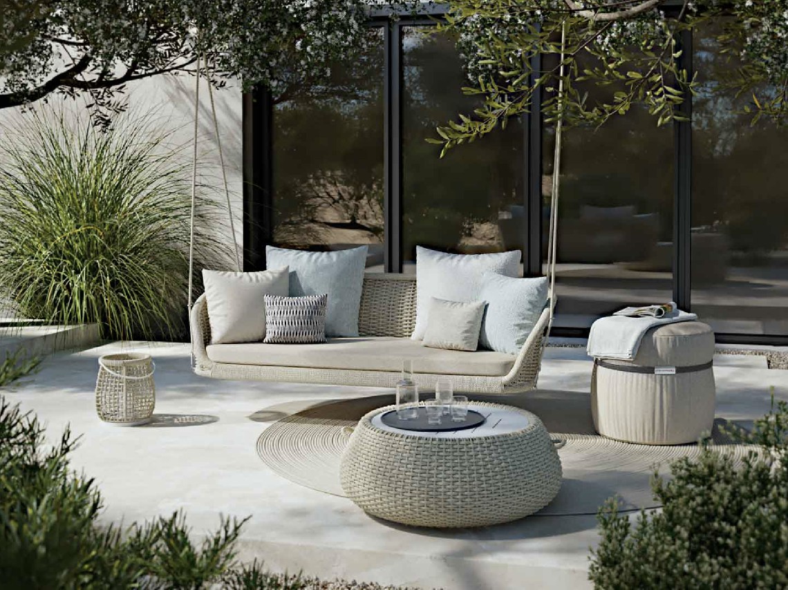 Una trama tessuta a mano in fibra termoplastica acrilica Teflon, impermeabile e facile da pulire, cuscini accoglienti ed ergonomici in cui trovare la propria dimensione dove spazio e tempo battono secondo i tuoi ritmi.