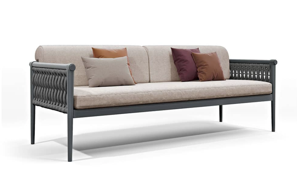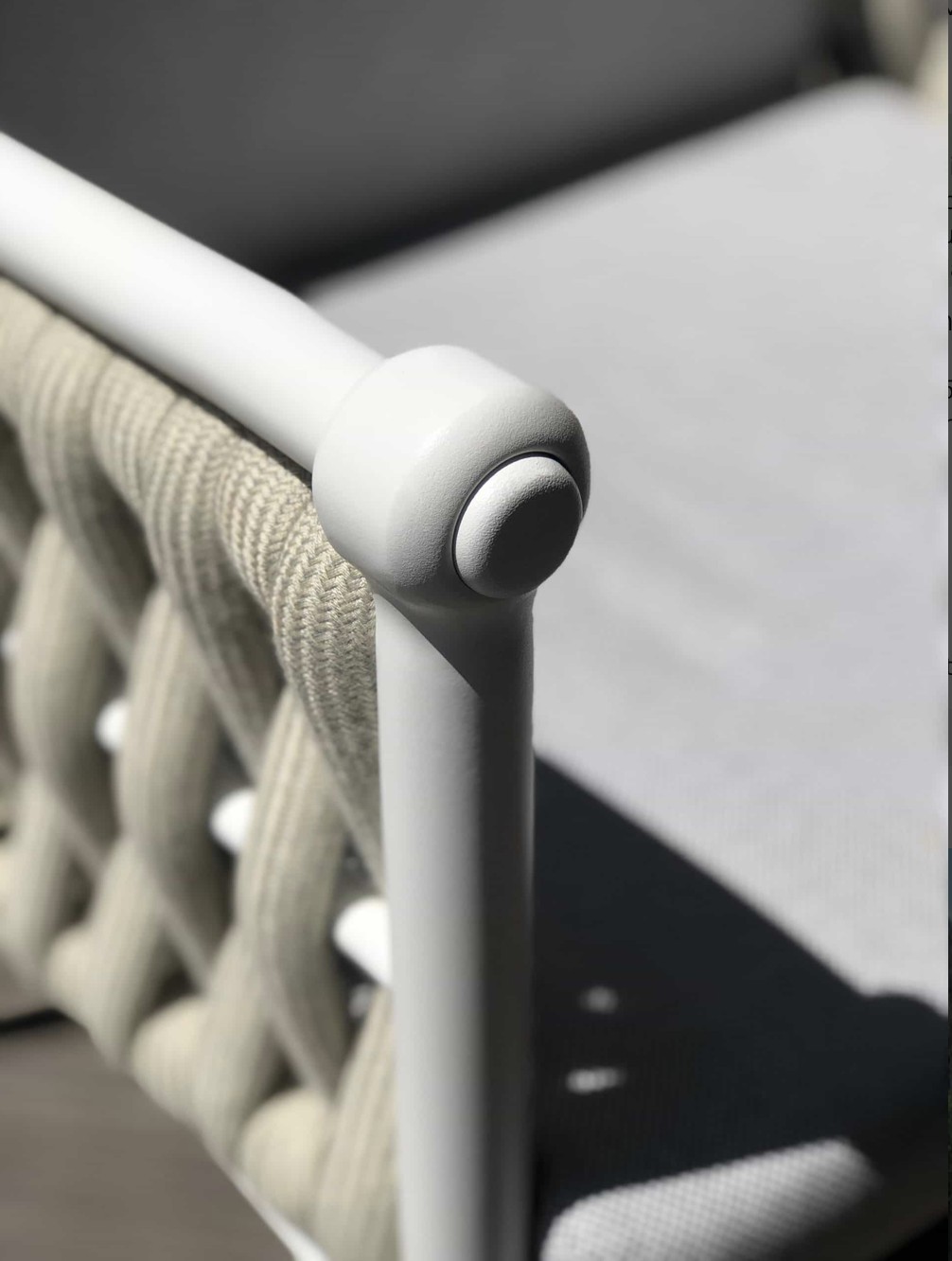 Come in una cravatta il nodo diventa dettaglio di eleganza ed elemento di distinzione, Dandy interpreta il concept attraverso una struttura in alluminio intrecciata da morbide corde.