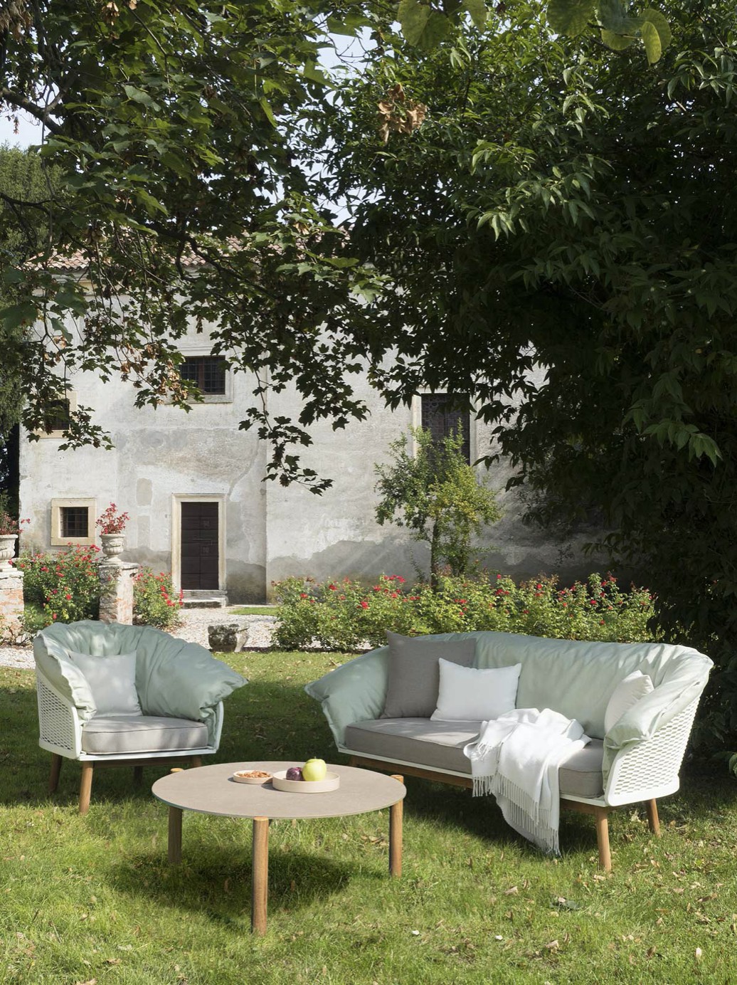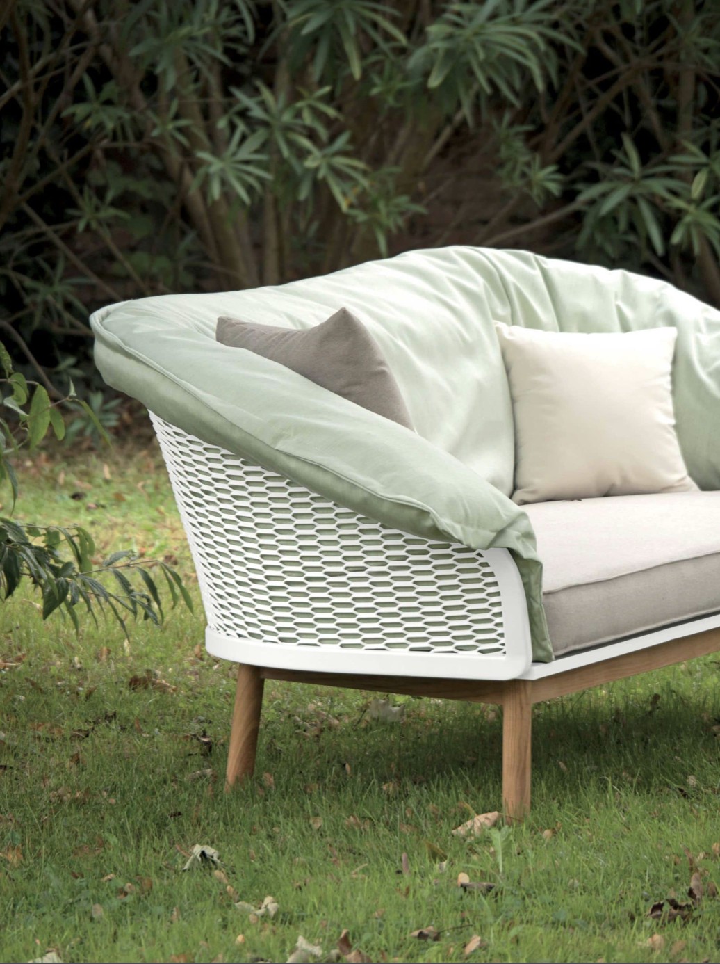 Alcova è stato progettato come uno spazio ibrido e coperto ma comunicante con l’ambiente esterno e la natura. Una struttura in alluminio robusta ma confortevole, un sistema di pannelli modulari in teak che riparano senza oscurare, una cuscinatura accogliente e ergonomica dove ritrovare una dimensione unica in cui spazio e tempo battono secondo i tuoi ritmi.