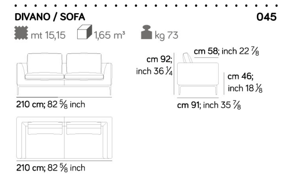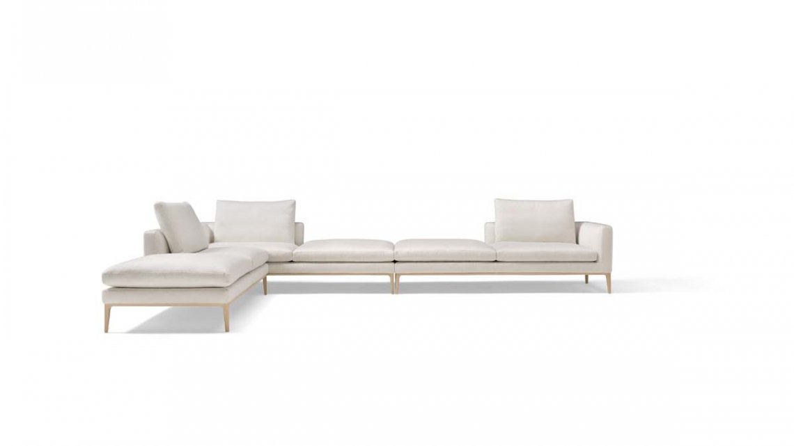 Un tratto continuo disegna il profilo delle sedute, delle spalliere e dei braccioli imbottiti che accolgono morbidi e soffici cuscini.