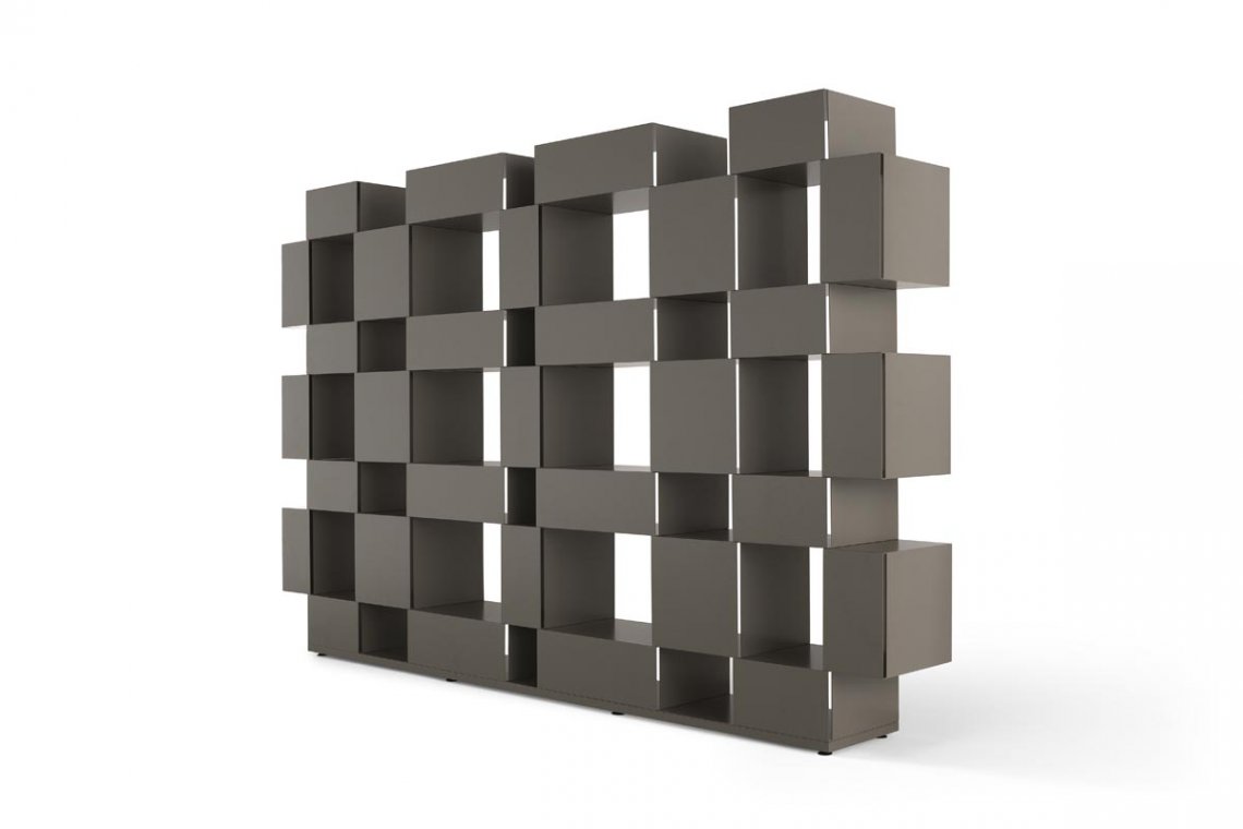 Geometria e rigore caratterizzano la particolare libreria a giorno Eresia che coniuga design e funzionalità.In Eresia i volumi si alternano in un equilibrato gioco di proporzioni. Cubi e parallelepipedi sono intervallati da aperture a giorno in una ludica alternanza di “vuoti” e “pieni”.Estremamente modulare e componibile, Eresia si inserisce perfettamente in qualsiasi ambiente, dall’ufficio alla zona living: un complemento d’arredo di estrema razionalità che può essere utilizzato anche per separare due diversi ambienti domestici.