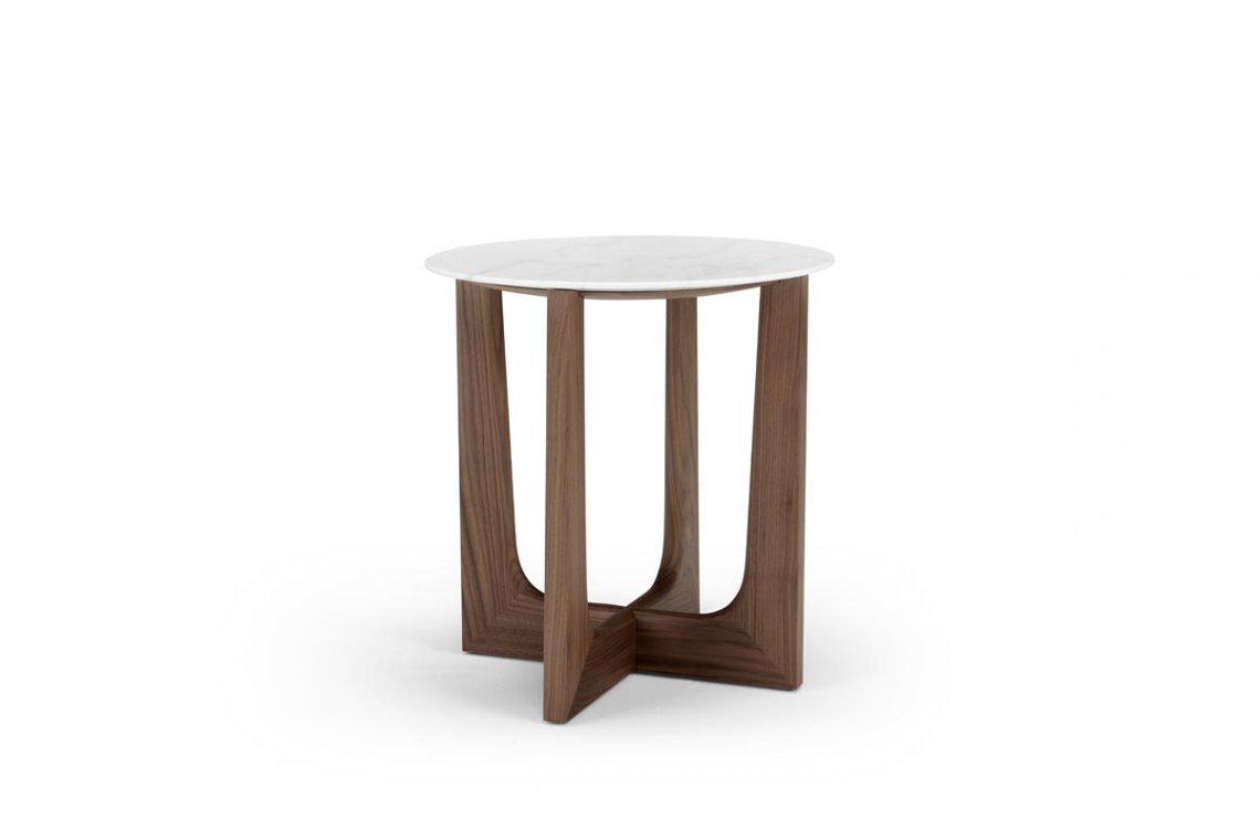 Vesta è una collezione di coffee table con struttura in legno e top in marmo.