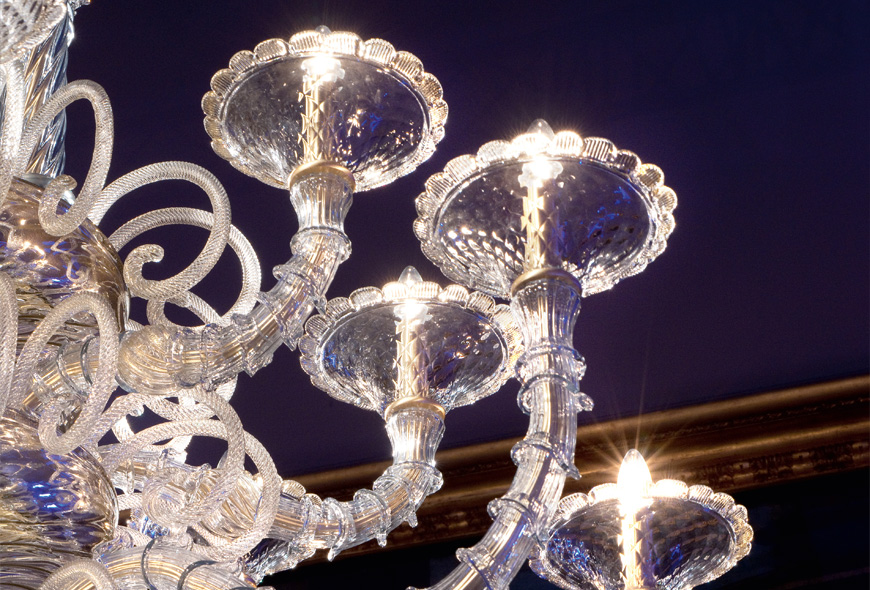 Seguso chandeliers embody the nature of shining glass. Developed with form, style technique, and different light translucencies, Seguso chandeliers over the centuries have adorned princely residences, large hotels, theaters, and museums.