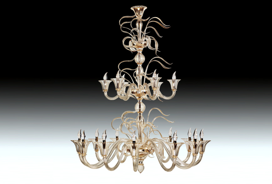 VENTO - 18 lights吊燈Seguso chandeliers embody the nature of shining glass. Developed with form, style technique, and different light translucencies, Seguso chandeliers over the centuries have adorned princely residences, large hotels, theaters, and museums.