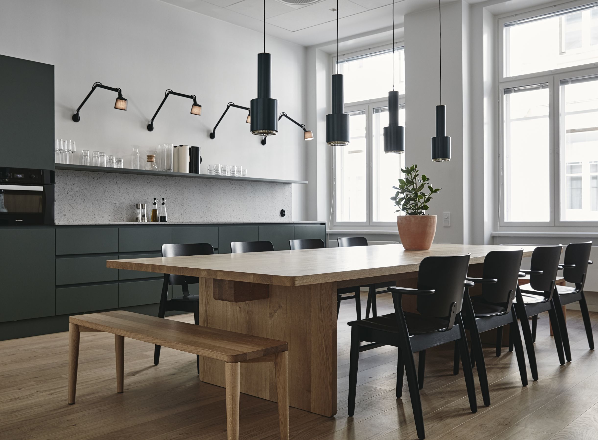這種優(yōu)雅的吊燈因其獨特的形狀而被昵稱為“手榴彈”。 Pendant Light A110由漆鋼燈罩和內(nèi)圈組成,可提供出眾的暖色調(diào)光質(zhì)。 “手榴彈”將直接和間接光投射到天花板上,其穿孔的內(nèi)環(huán)在吊燈周圍產(chǎn)生電暈效果,同時減少眩光。 “手榴彈”是為阿爾瓦·阿爾托(Alvar Aalto)為芬蘭工程師協(xié)會設計的建筑而設計的。