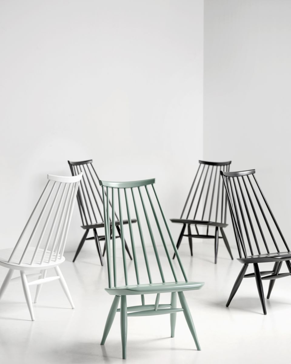 The Mademoiselle Lounge Chair is made from solid birch and was specifically developed for the home. Crafted using an age-old construction method, the spoke back contrasts strikingly with the smooth modernist curves of the seat’s softly rounded edge. In creating the Mademoiselle, designer Ilmari Tapiovaara drew inspiration from traditional Finnish chairs, then applied his own modern design approach. Also available as a rocking chair.