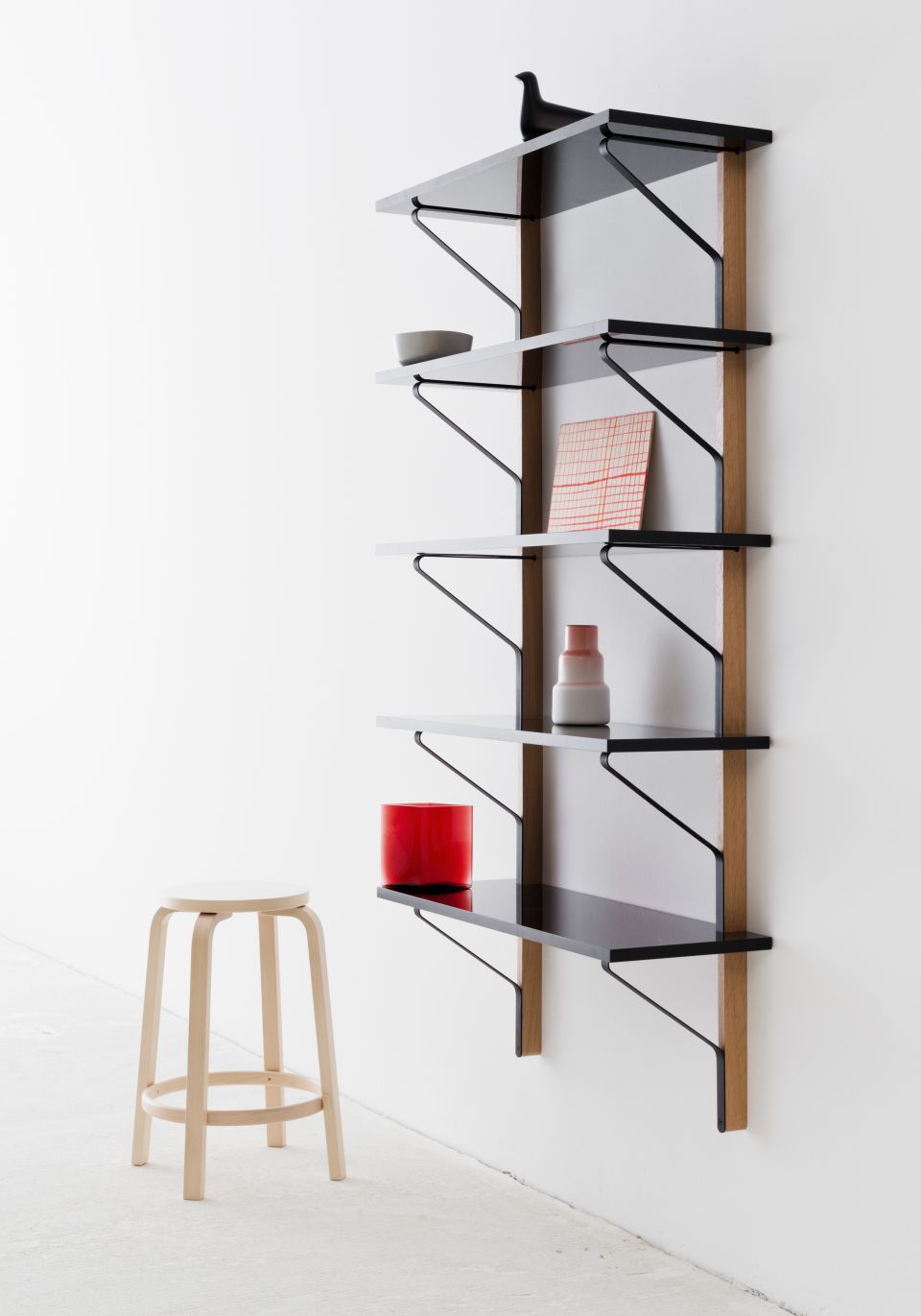 該擱板單元將天然的實心橡木墻托架與簡單的彎鋼帶相結合,這是Kaari系列的特色。 光滑的架子和鋼帶之間的相互作用創造出獨特的流暢輪廓,而寬度則為存儲和展示提供了寬敞的空間。