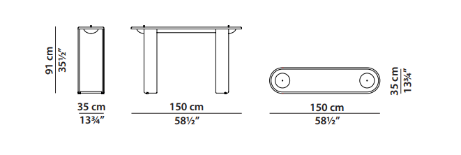 Matte black-lacquered MDF top with leather-covered central part. Legs in poplar plywood, externally matte black-lacquered, with leather-covered inside.