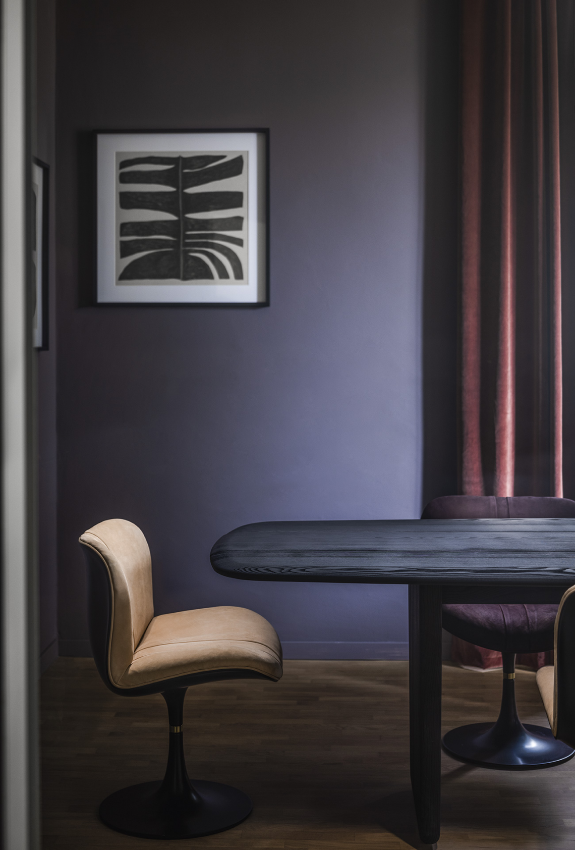 Crossing the threshold into the dining or study area, however, those same characteristics interpreted in the version featuring sandblasted solid ash that has been stained black take on a more solid personality. It is the versatility with which Nairobi succeeds in giving substance to the idea of the world we have built up through travelling and living, the synthesis of the freest experiences and those regulated by the rules of coexistence; it indicates a more relaxed way of welcoming, a conversation without labels.