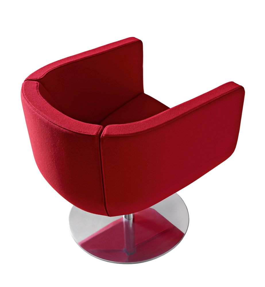 Tulip是一款可360°轉動的扶手椅,有著多樣化的用途。它的特點在于其厚實度與直線曲線交互之間的完美平衡。采用拋亮光鋁制成的支撐盤展現了部分的框架,從而突出了該產品的渾圓感。它的靠背上有兩道切口,而一個柔軟的座墊讓這款椅子顯得溫馨又舒適。