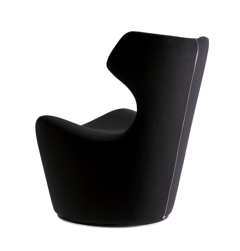 如果Grande Papilio的翼形設計能夠保護用戶的頭部,那么Piccola Papilio上的翼形設計則可以支撐靠背,打造出一種雖然尺寸較小,但能夠對舒適需求做出準確回應的座椅。截頭圓錐體的造型沒有改變,而且靠背的后面始終裝有一個拉鏈。