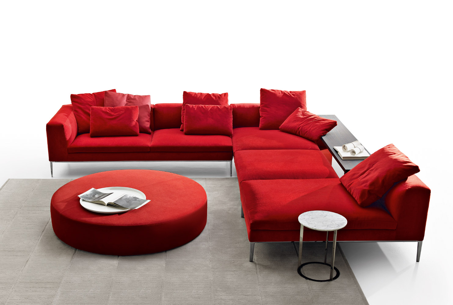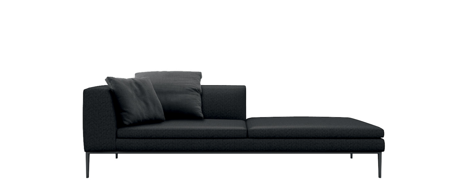 Michel 坐具系統包括 34 個直線和模塊化部件,以及 5 款正方形和長方形的擱腳凳。與它的前身 Frank 相反,這個系統的特點是有新的細框架,其材質為青銅鎳色涂漆鋁或黑色鍍鉻鋁,座墊有不同的舒適性。所有直線和模塊化的變化款有兩種不同的深度(89 厘米和 104 厘米)。產品的這種多樣性使得組合能夠有不同類型和方式的用途,適合從正式到休閑風格。Michel 沙發寧靜而又明確地回應了對舒適和幸福的欲求,有聚氨酯泡沫塑料填充的框架、Dacron? 材質填充的靠背和扶手、羽絨和聚氨酯填充的座墊。