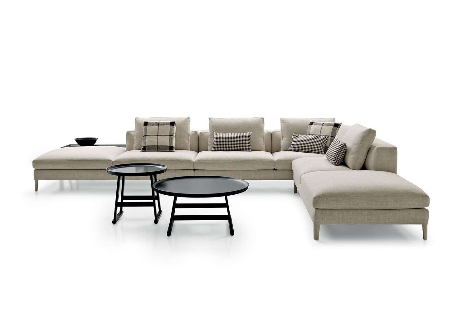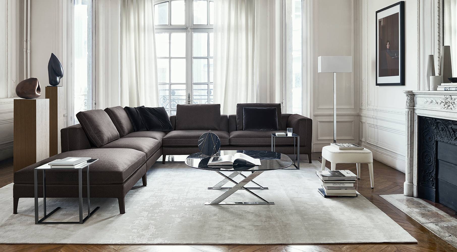 Dives是終極的沙發,它89厘米的深度在套有繃緊套子的扶手的映襯下更加突出;沙發內側衍縫效果則是受到經典Chesterfield沙發的啟發。沙發腳部分有織物、皮革或黑色蟲漆飾面幾個版本。Dives還有更深度元素(104厘米)的模塊式沙發可供選擇,但是不含內側衍縫效果。