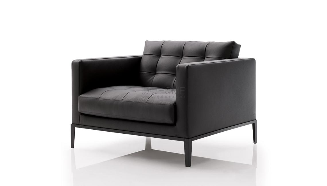 新品沙發AC Lounge,加上扶手椅和擱腳凳,是由Antonio Citterio操刀設計的。這款優雅、永恒的作品在底座和靠背上都有明縫軟包和靠包;沙發腳和下緣采用的是黑色涂層或銅鎳涂層的金屬。這不僅是辦公室、酒店和公共區域的理想產品,而且也是用于家中的經典產品。