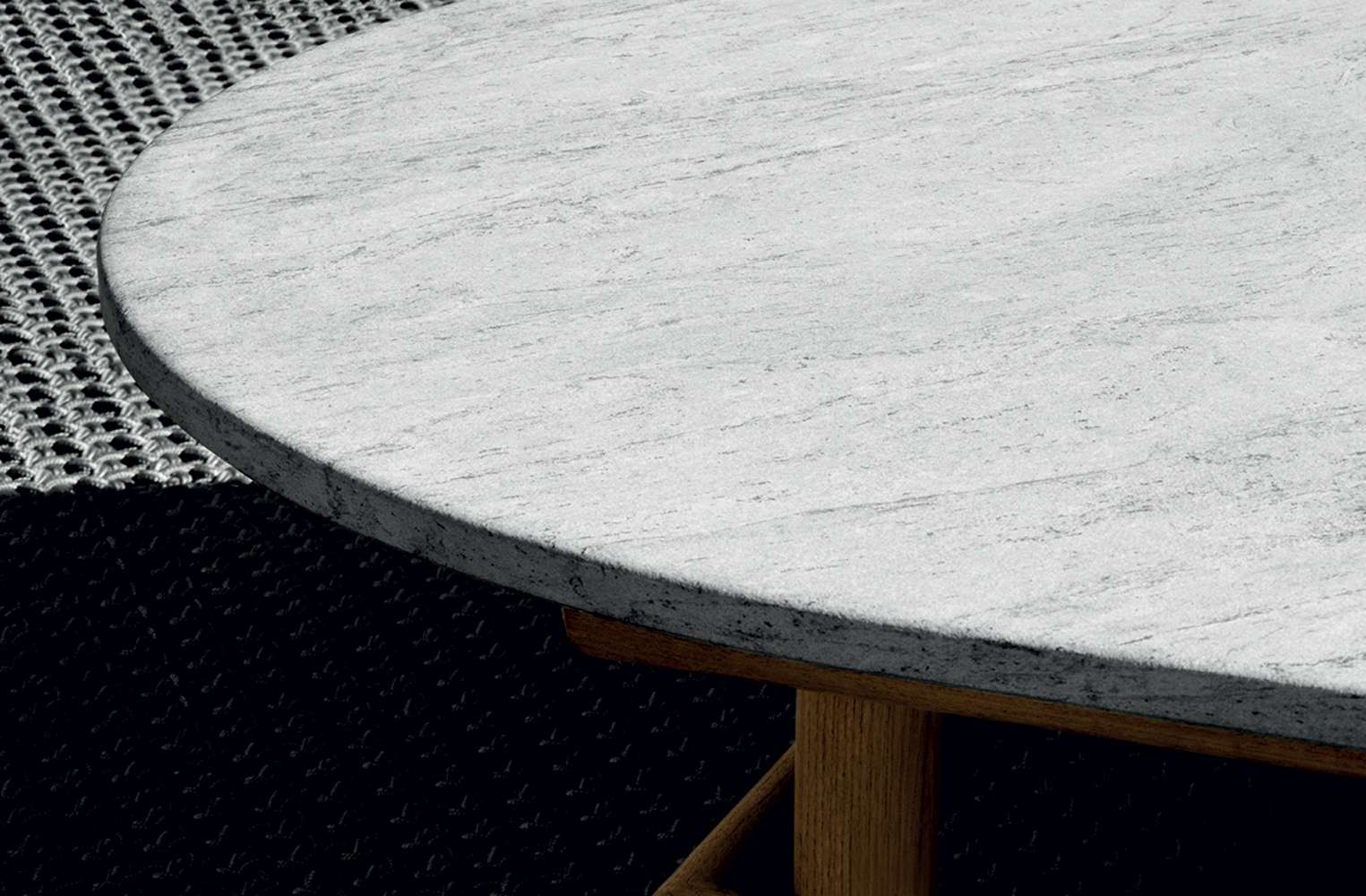 Minimalist and innovative, the Ayana collection becomes a new chapter in the story that connects B&B Italia to Naoto Fukasawa. It sees wood as the protagonist, interpreted in an unusual way, witha pleasant oriental touch. If the depths and heights are a clear reference to the south-east Asian tradition, the backrest recalls a Swedish wall bar, an exercise equipment turned into a load-bearing element. Thanks to this solution, the elements of the Ayana collection can be enjoyed and appreciated at 360 degrees, discovering on each side a new elegant interplay of intersections and proportions. Two and three seat sofas and the armchair have armrests at different heights. The armchair armrest is higher to guarantee a more ergonomic seat. The sofa armrest, which is lower, can be combined with a cushion that is easy to be fastened and removed, and helps to lie down more comfortably if necessary. The upholstery of this collection stands out for the individual cushions, all covered with waterproof fabrics.