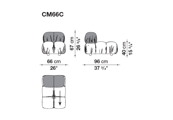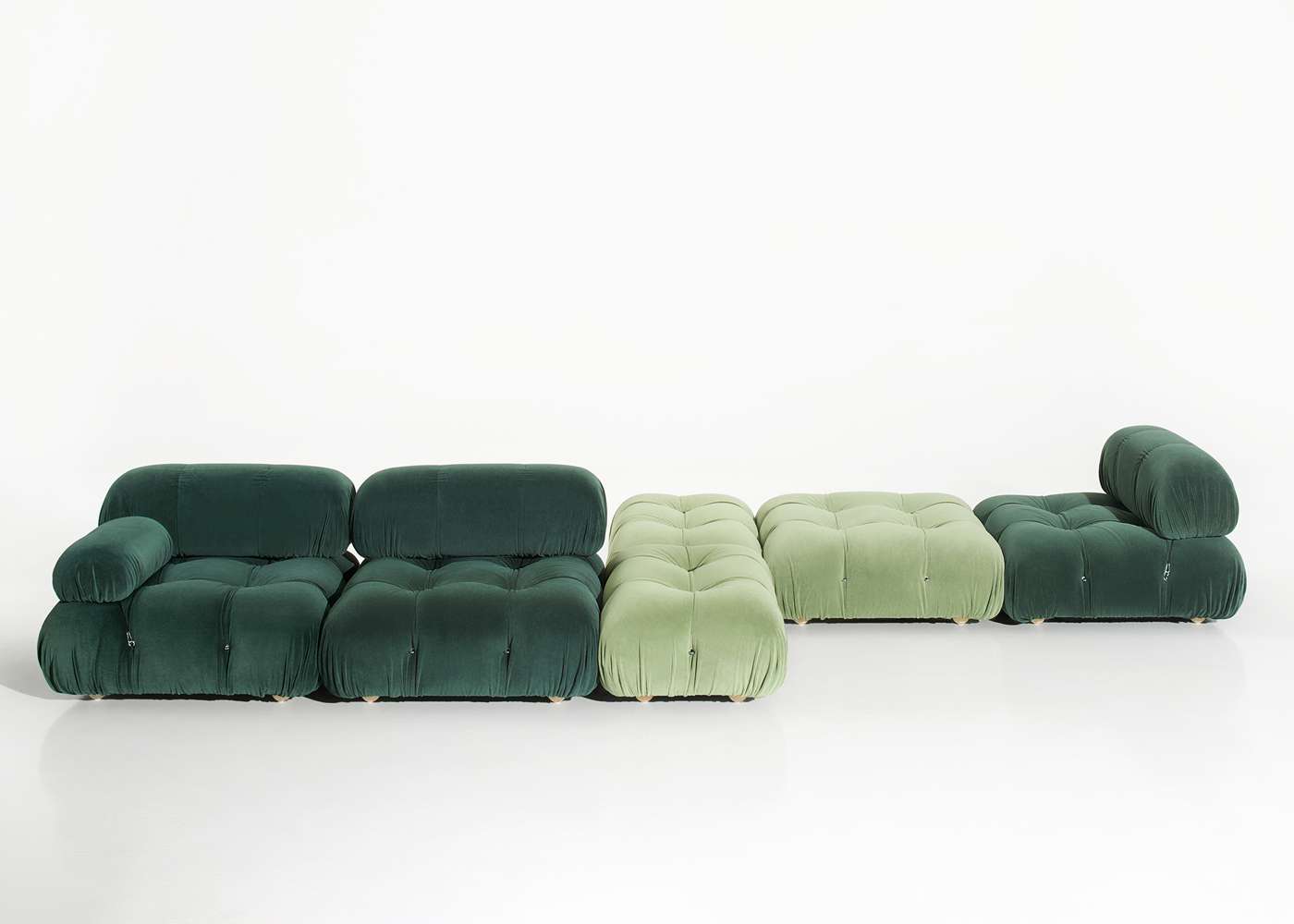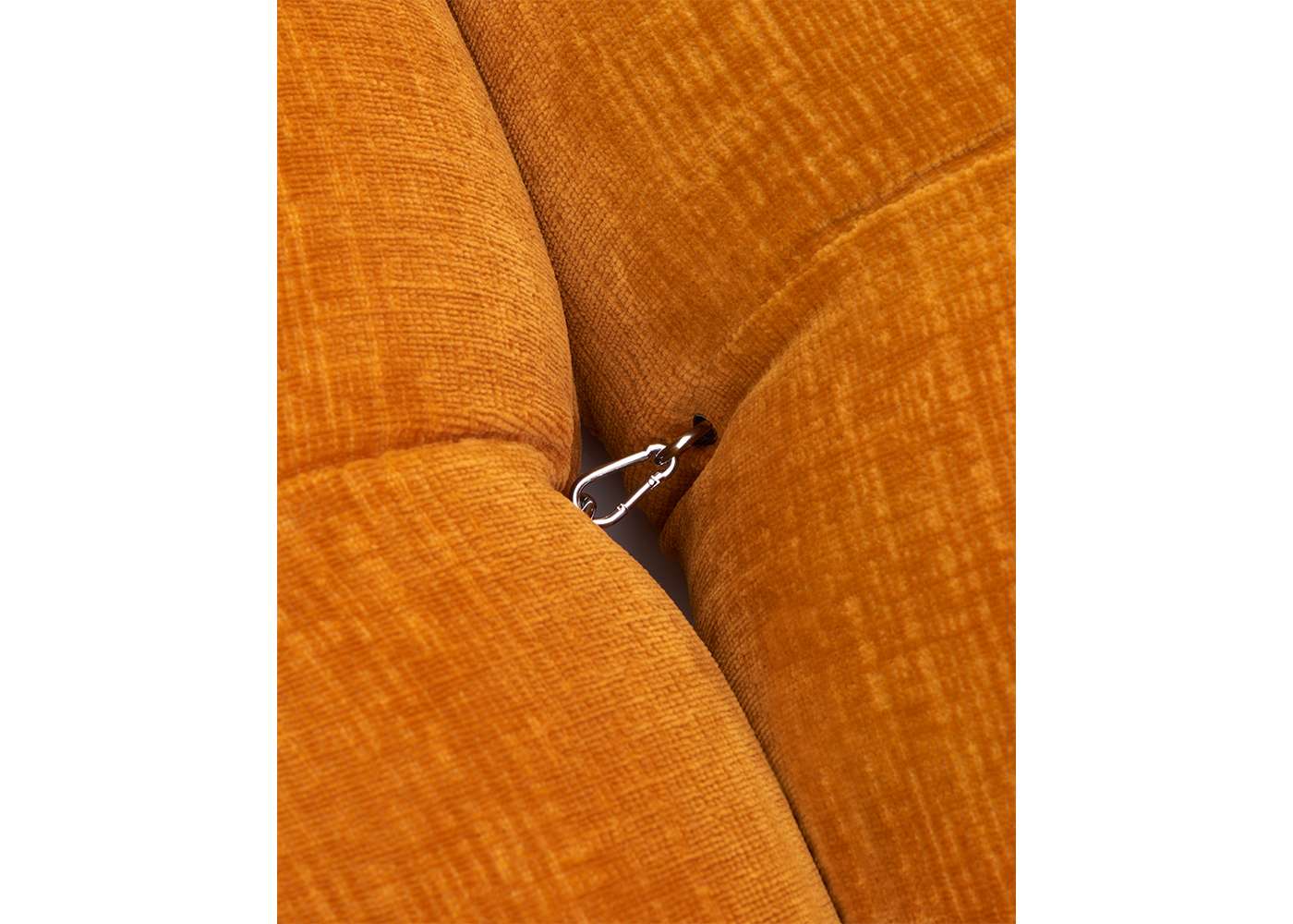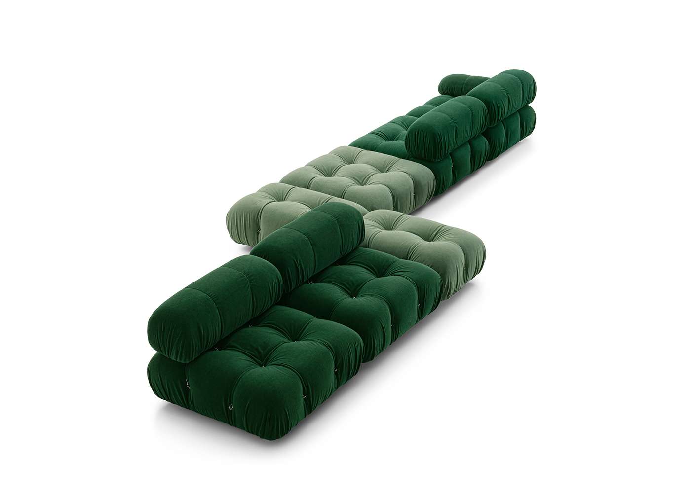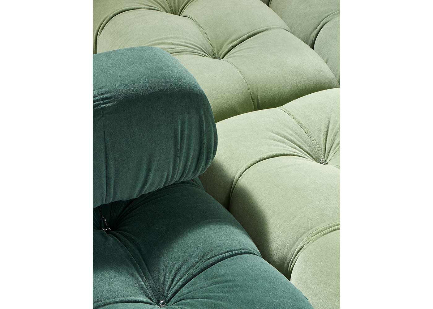In its reissue, Camaleonda preserves the elements that have made it a contemporary classic. By mutual agreement, Mario Bellini and B&B Italia have decided to keep the cm 90x90 seat module, together with the backrest and the armrest, faithful to the original project, whose original cutting pattern was used for the new edition. The generous polyurethane padding that forms the characteristic capitonné design remains unchanged, still manufactured with the innovative system of cables, hooks and rings created by Bellini in 1970, which defines the characteristic look and modularity. Thanks to the tie-rods and the rings, in fact, the modules can be unhooked and recombined at will, allowing the sofa to adapt to an evolving taste and the dynamic needs of those using it. The fundamental characteristic of Camaleonda is its unlimited modularity, a geometric pattern that allows each element to become a sort of enormous pixel through which to define your home environment. By hooking and unhooking seats, backrests and armrests, you can enjoy the luxury of changing your mind as many times as you desire, moving and redesigning the space.