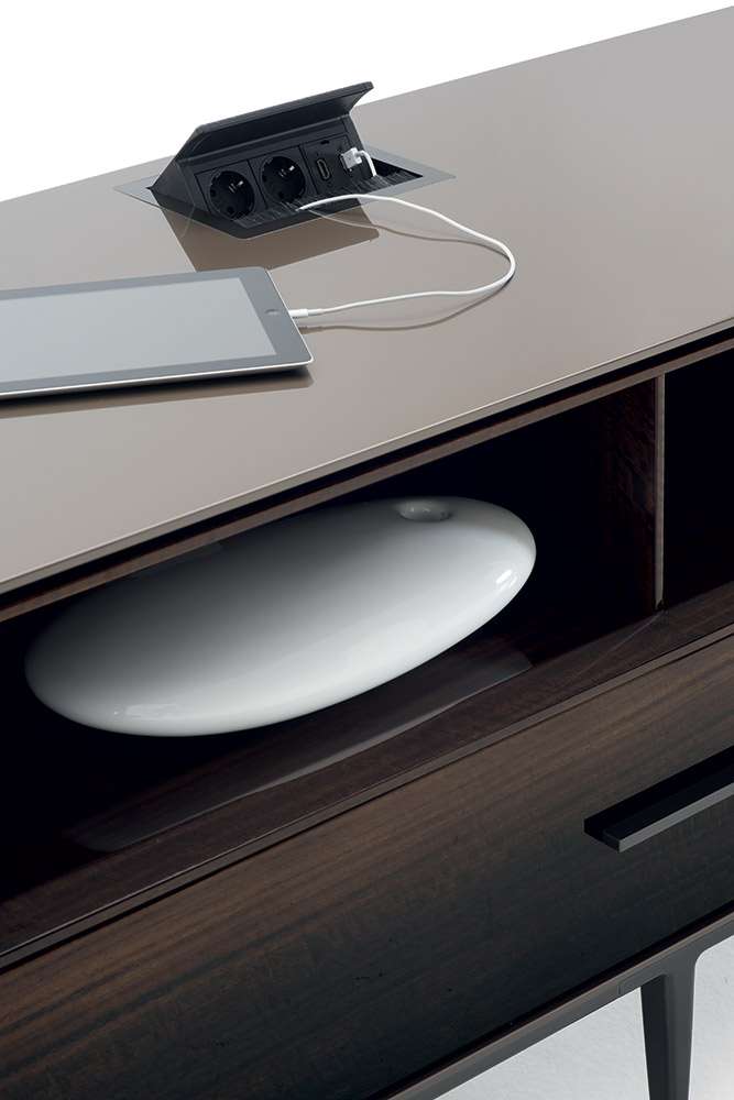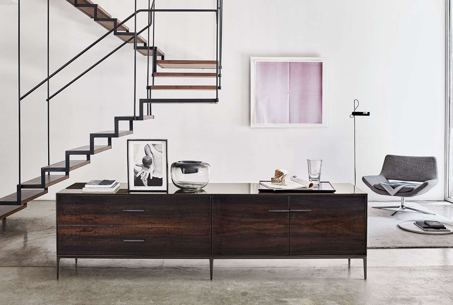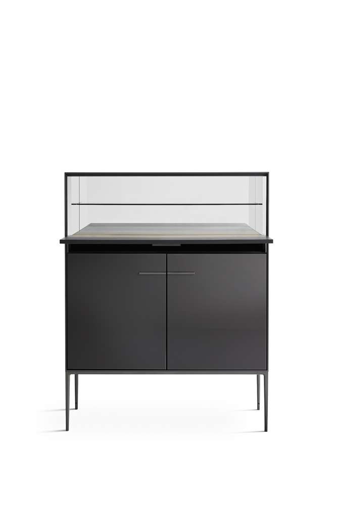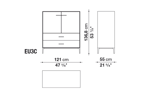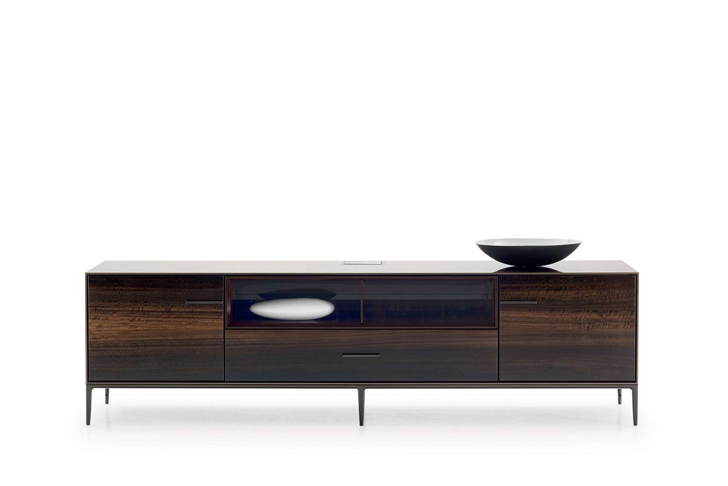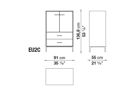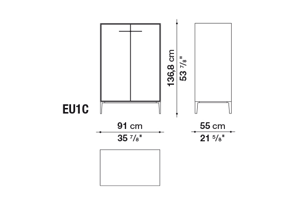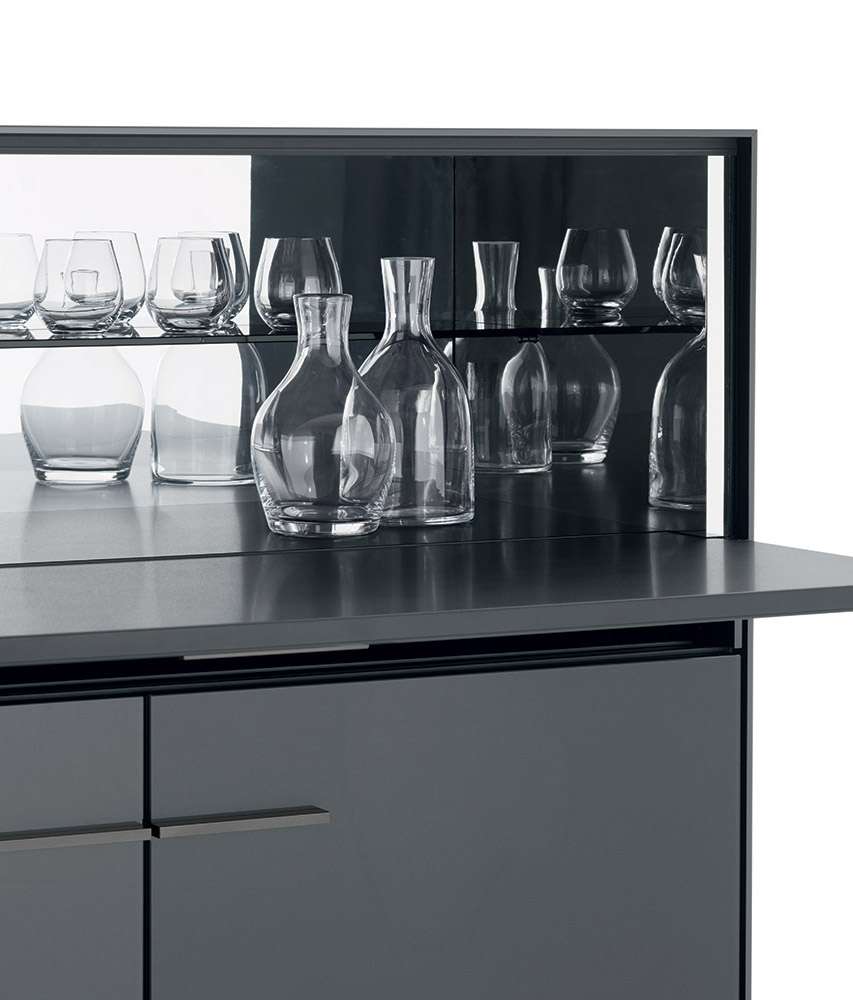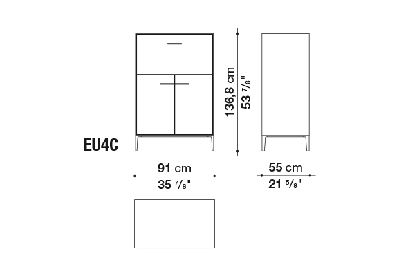 Eucalipto is the name of a series of units designed for the living room, dining room or wherever a special focus is required. Eucalipto enriches B&B Italia’s collection with a sophisticated touch suggesting original glamorous combinations. For the carcass acrylic finish that develops in three variants with different combinations for doors and drawers: black structure with doors and drawers in grey mirror, in black back-painted glass or in eucalyptus frisé wood with glossy finish; bronze structure with doors and drawers in bronzed mirror, in bronze back-painted glass or in eucalyptus frisé wood with glossy finish; teal blue structure with doors and drawers in grey mirror teal in teal blue back-painted glass or in eucalyptus frisé wood with glossy finish.