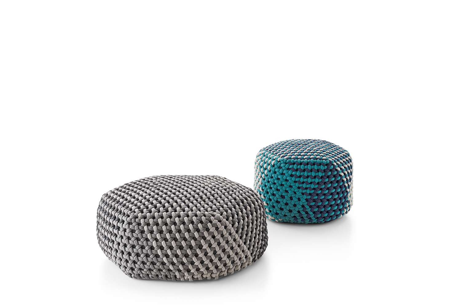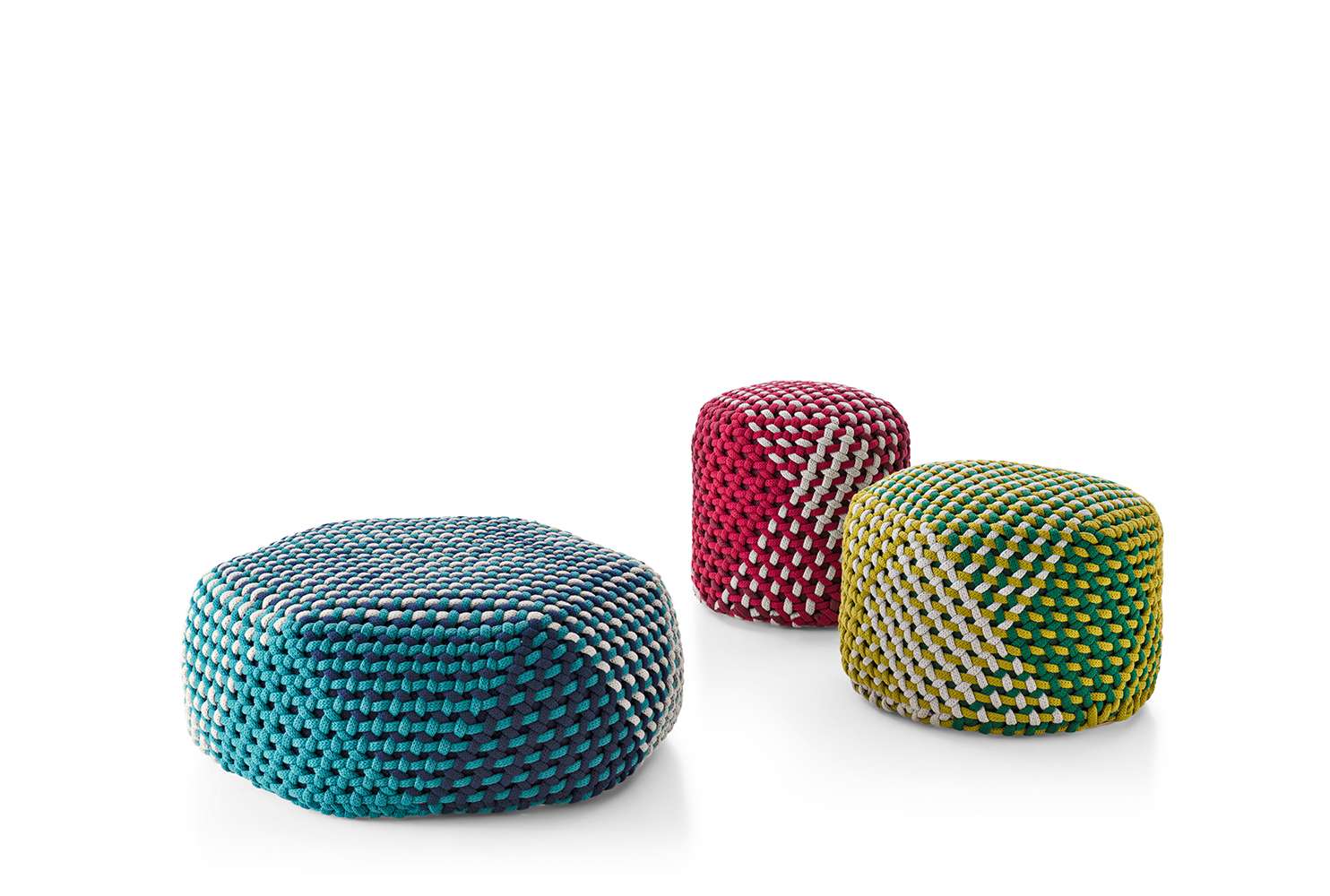 unPIZZO, a design studio and textile handicrafts laboratory specialized in interlacing for furnishing, continues its research on the revival of ancient craft techniques with Tramae, a brand new ottoman for B&B Italia. Available in three dimensions, this small object full of character stands out for its hexagonal shape, which is rounded until the edges are no longer visible. The surface shows a singular dynamic mix of materials and colors that come to life through an exclusive weave that reinterprets the tradition of wicker basket making in a contemporary key. At the end of its lifespan, Tramae can be dismantled completely so that each component can be separated and disposed of in the best way for each material.