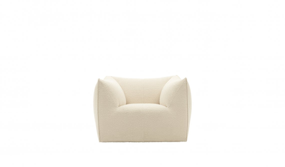 The Bambola armchair is part of Le Bambole series, originally designed in 1972, awarded with the Compasso d’Oro in 1979. Icon of timeless contemporaneity and one of the most effective expressions of Made in Italy excellence combining research and creative flair, Le Bambole have provided a very personal answer to the theme of seats. What makes them special is the apparent absence of a load bearing structure, the extreme naturalness of the shape, and the combination of comfort, softness and elasticity that their appearance conveys. Where the original construction was based on a metal structure embedded in polyurethane, now the materials used are of the latest generation, starting from recycled polyethylene gives structure. A sustainable project thanks to the choice of materials and the construction method, that allows the components of Le Bambole to be completely disassembled and therefore easily recyclable.