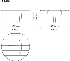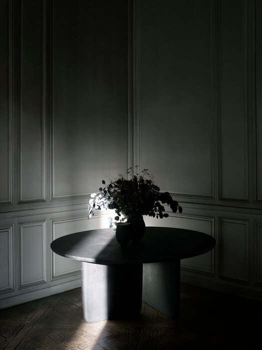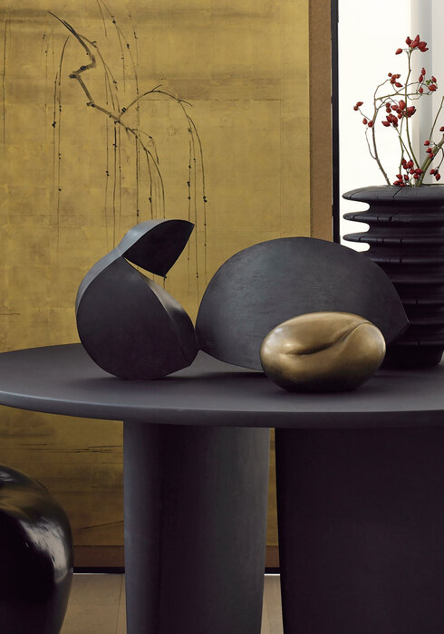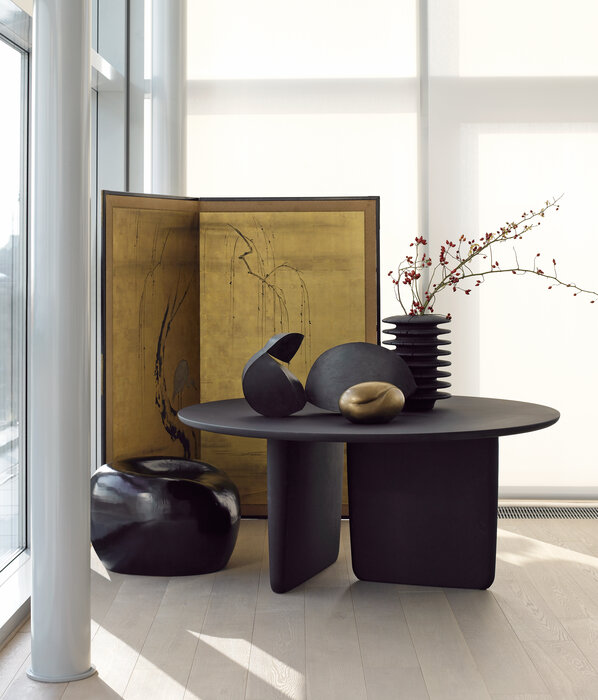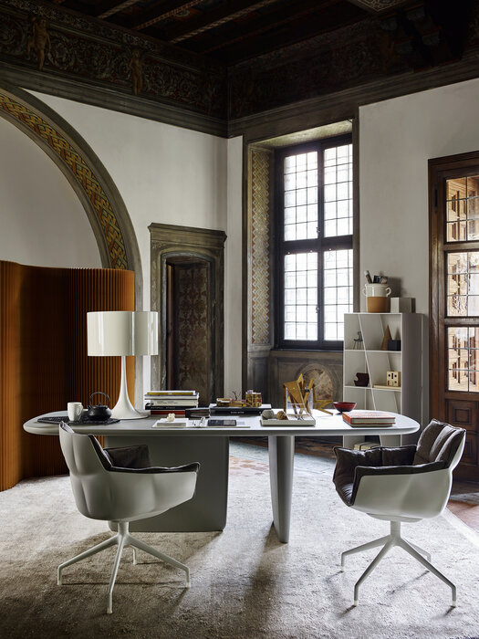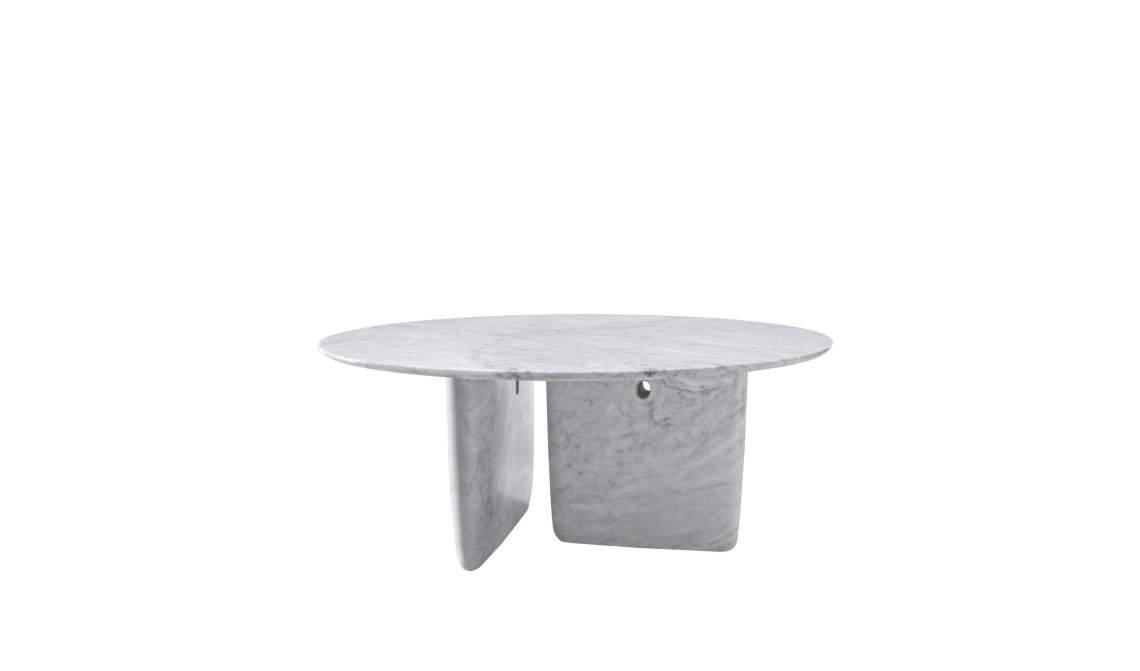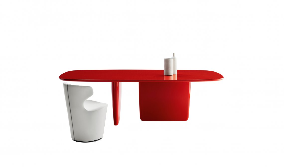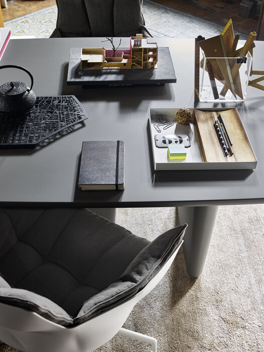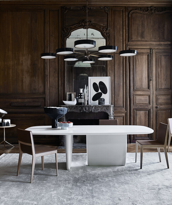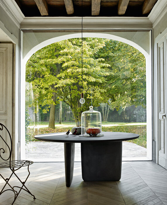 Available both round and rectangular with rounded ends, Tobi-Ishi is a sculptural table that makes reference, stylistically and in its very name, to the ornamental stones used in traditional Japanese gardens. This iconic table brings together functional features with a statuesque appearance, with truly amazing results. The overhanging top and bases look different depending on the viewpoint, while the various finishes endow the table with highly personal interpretations: from cement grout to marble or wood, and from matt lacquering in a wide range of colours to glossy lacquering also in sophisticated candy red and smoke blue hues. With its sculptural line Tobi-Ishi becomes the protagonist of the space.