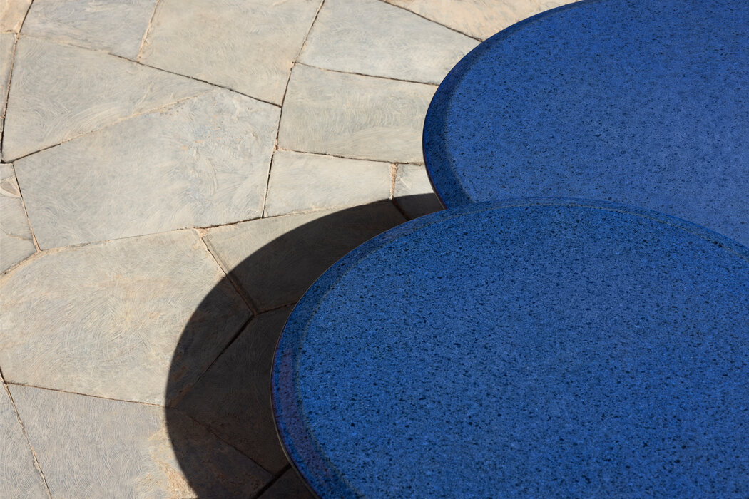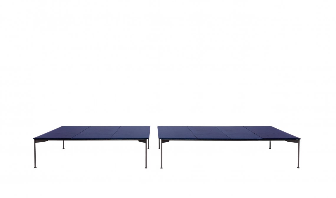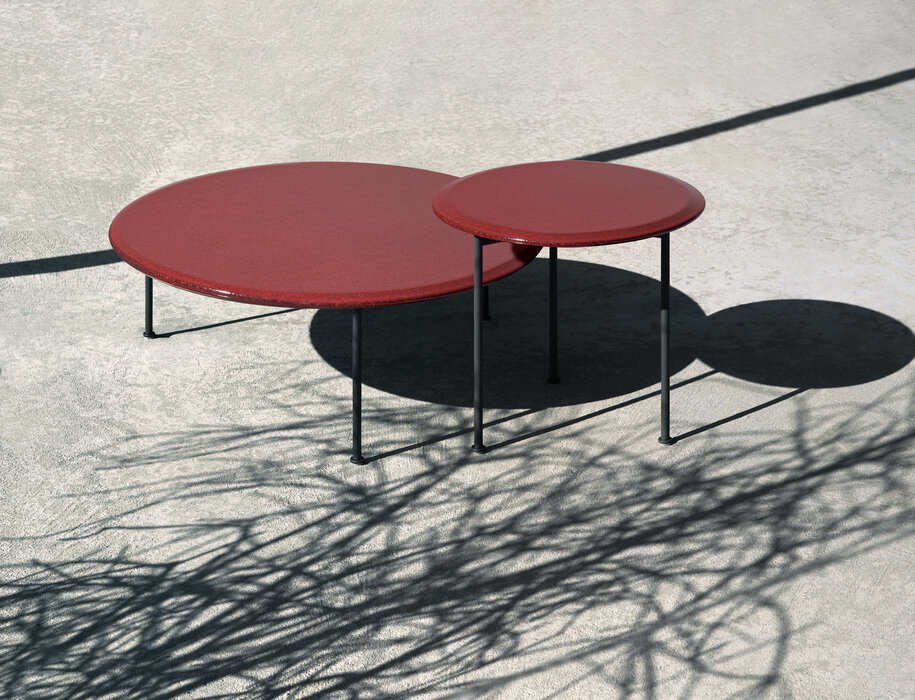 The Borea small tables for outdoor use offer refined support solutions that play with shapes, sizes and materials. They stand out for their thin frame in painted steel rod and tops in enamelled lava stone, both available in different colours.
