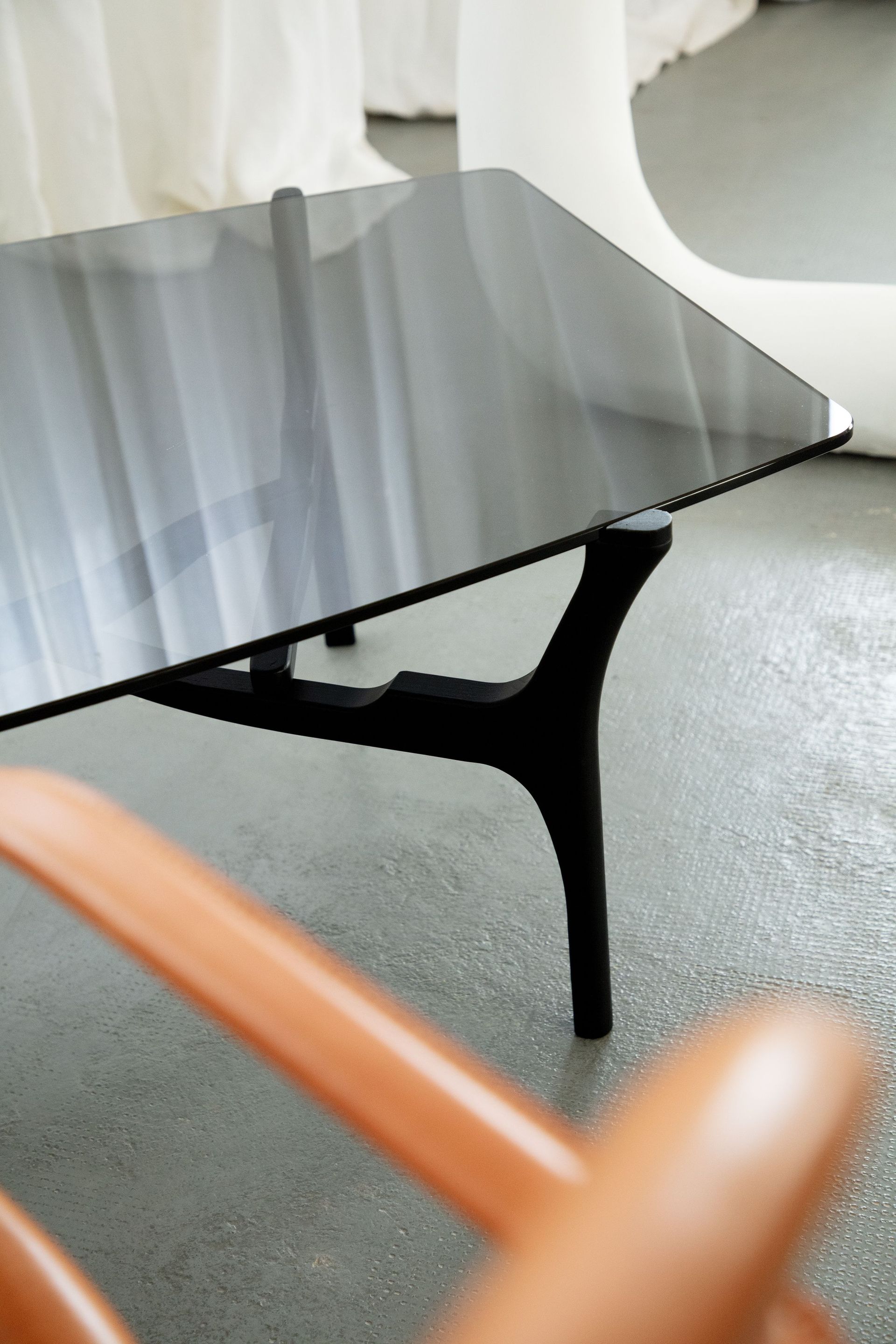 Cheekily calling to Carlo Mollino’s greater influence on Oscar Tusquets, these tables were named Carlinas. Their clear surface exposes the now-visual supporting structures. Like Mollino’s nature-informed pieces, the Carlinas boast punctuating twisting stretchers that hold the smoked glass tabletop.