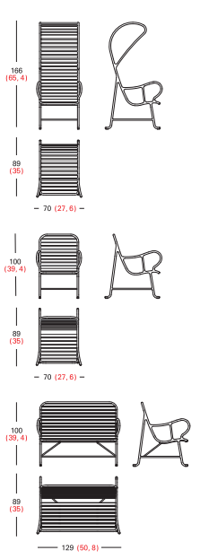 Estructura fabricada en fundición y extrusión de aluminio. Pintadas en blanco (RAL 9001), verde (RAL 6021)
