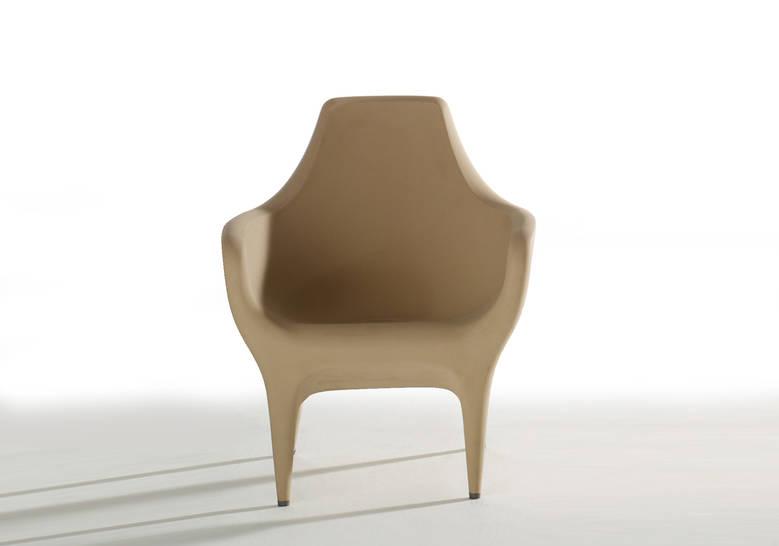 Sillón, sofá y capota fabricadas en una sola pieza en polietileno de media densidad (MDPE) rotomoldeado.