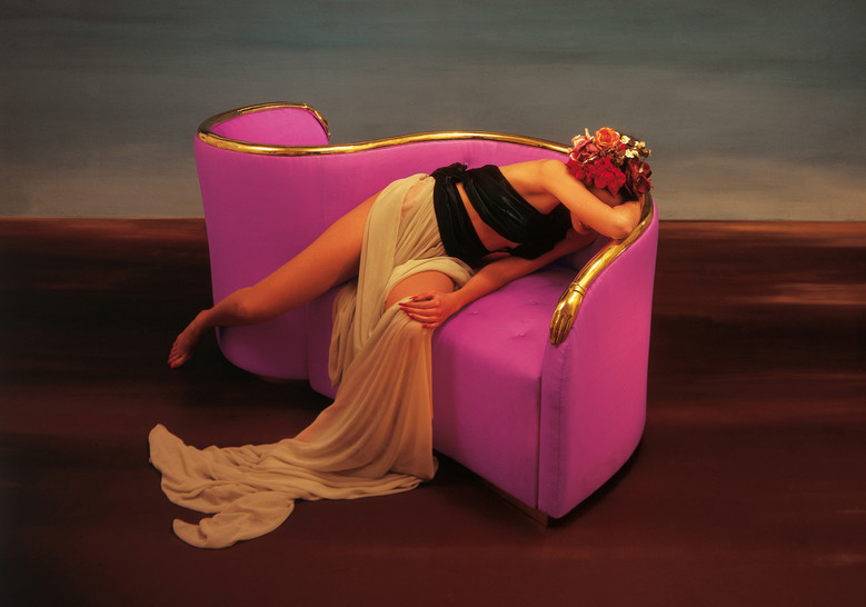 Sofá confidente extraído del cuaderno de dise?os dalinianos para Jean Michel Frank. Típica interpretación