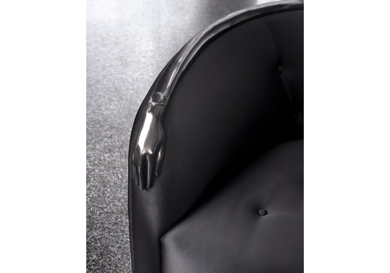 Remate superior del respaldo en fundición de latón pulido y pátina negra sin barnizar.
