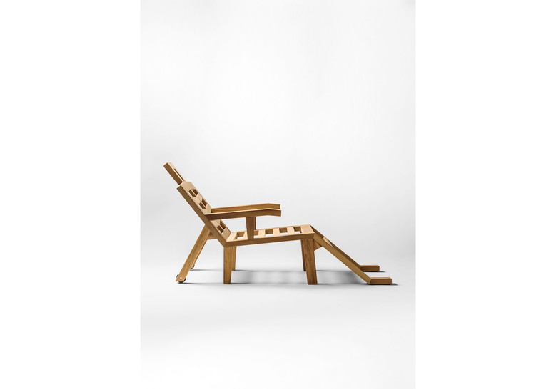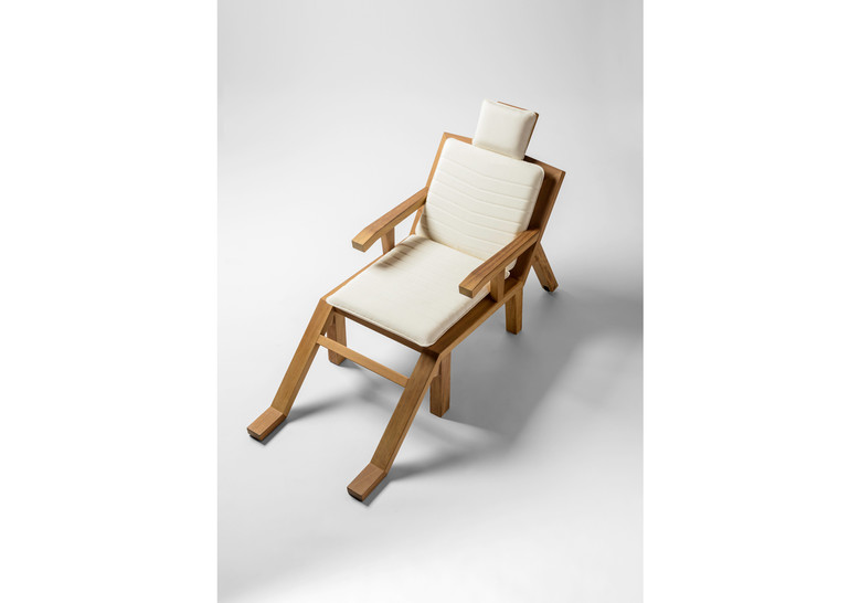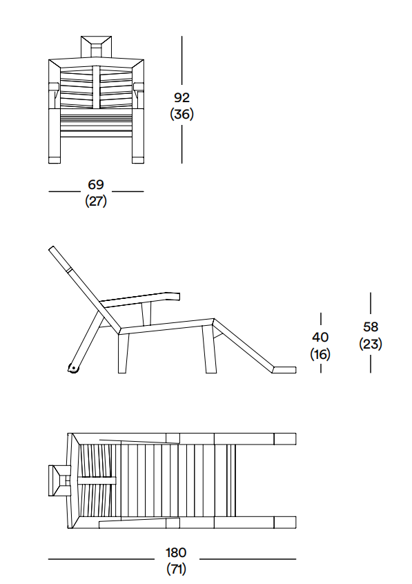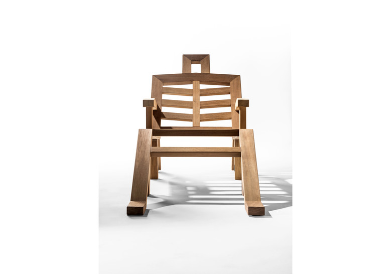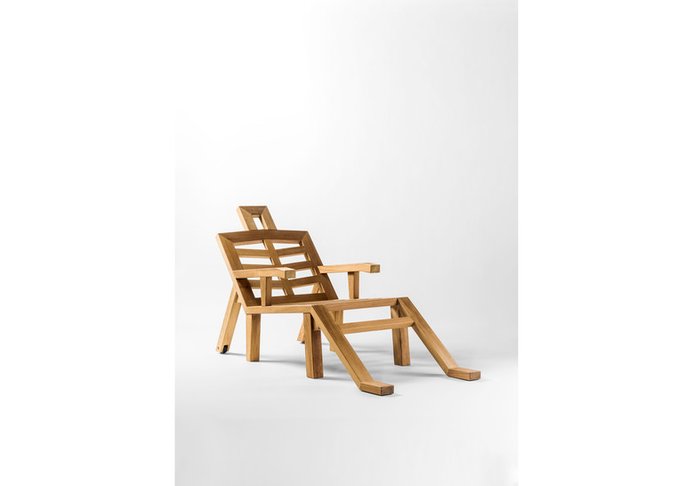 Estructura de madera maciza de iroko con protección de aceite. Ruedas de poliamida y tornillería en acero