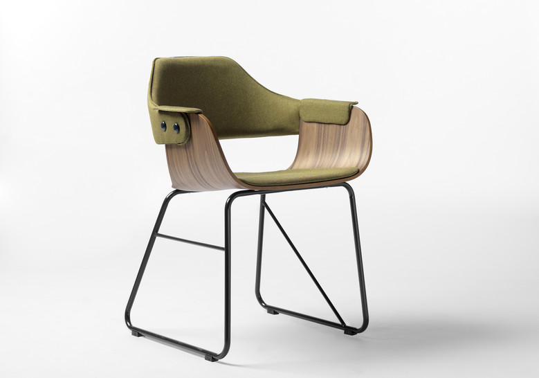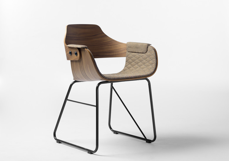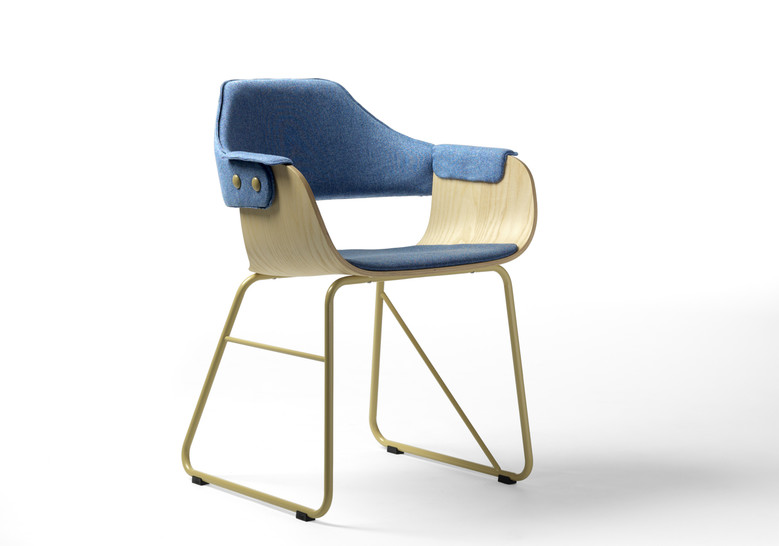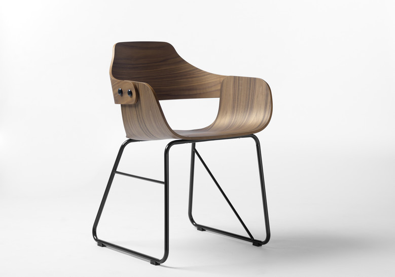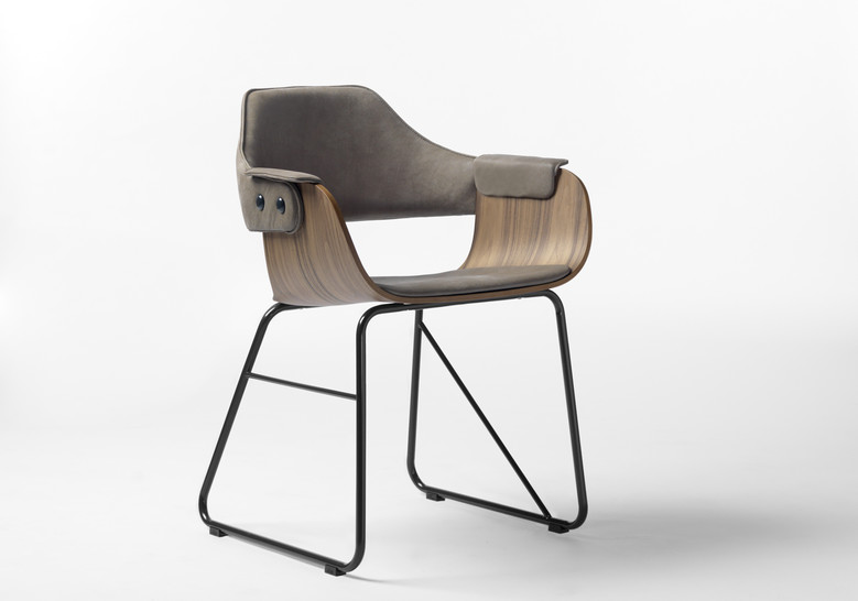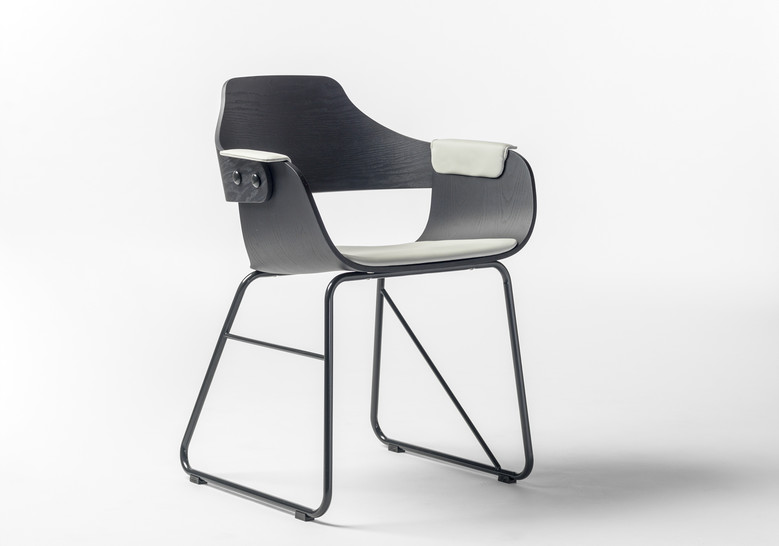 La silla Showtime le hace honor al nombre de la colección. Dos estructuras distintas para las patas, apoyabrazos