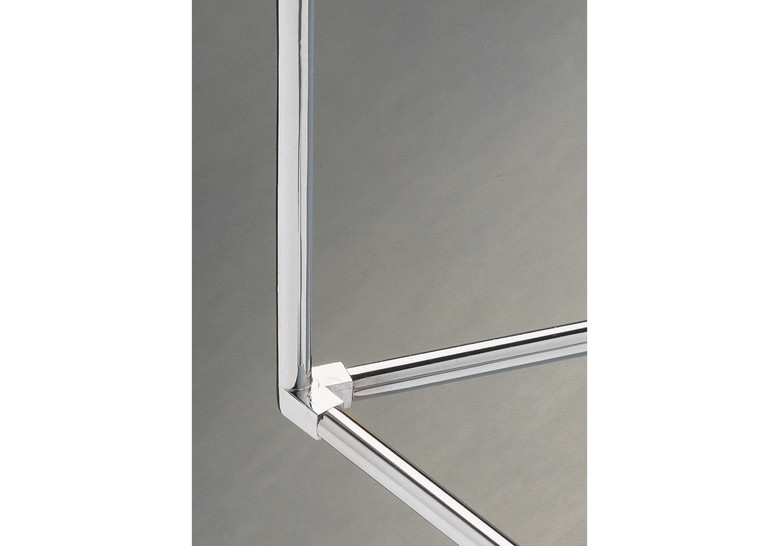 Estructura desmontable en varilla de hierro cromado. Aletas orientables para el control de la luz en