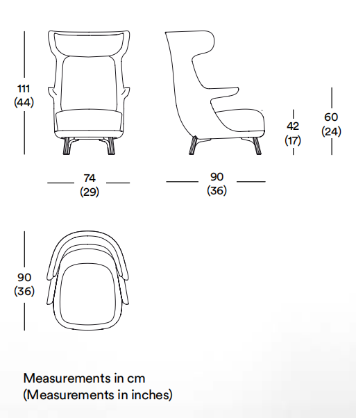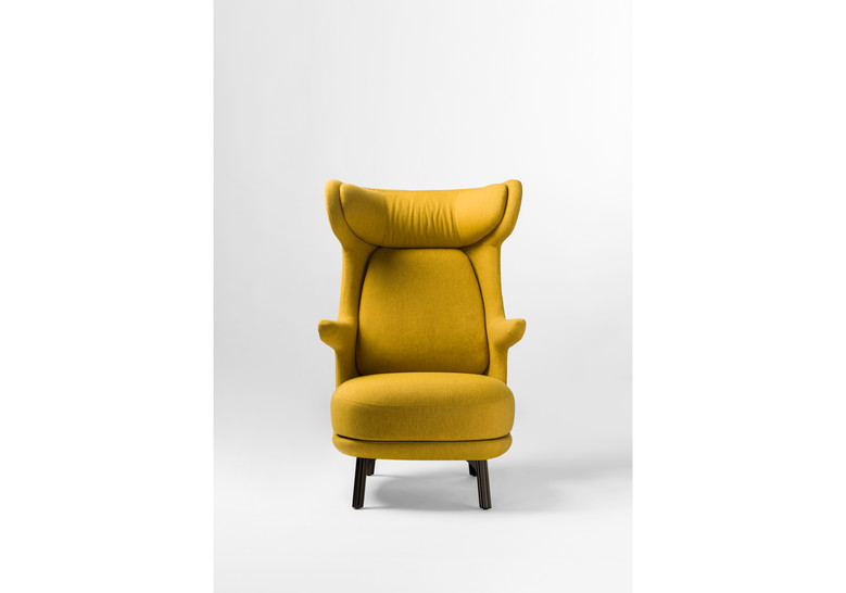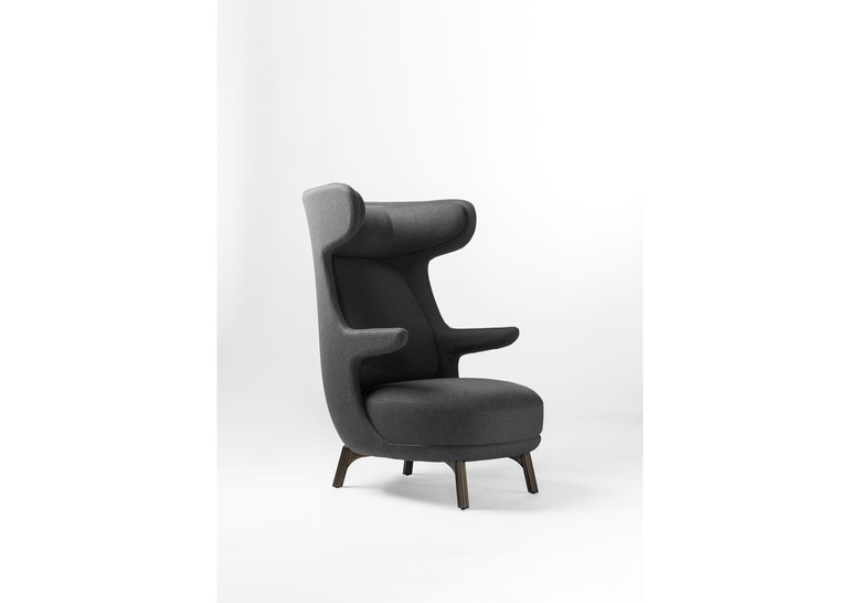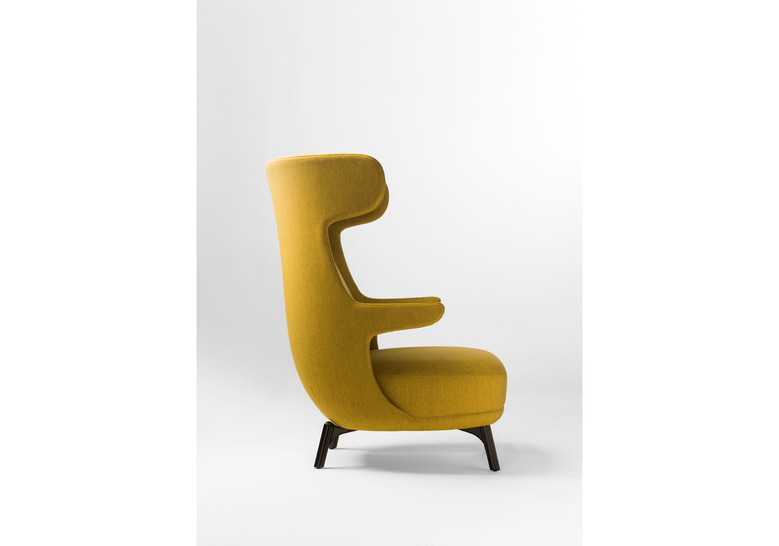 distinguían por su cuello largo y estilizado. El sillón es también esbelto desde cualquier lado