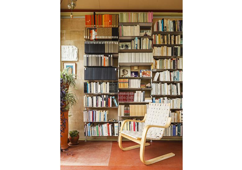 Estantes y soporte vertical en extrusión de aluminio, cepillado y anodizado plata. Herrajes de sujeción en